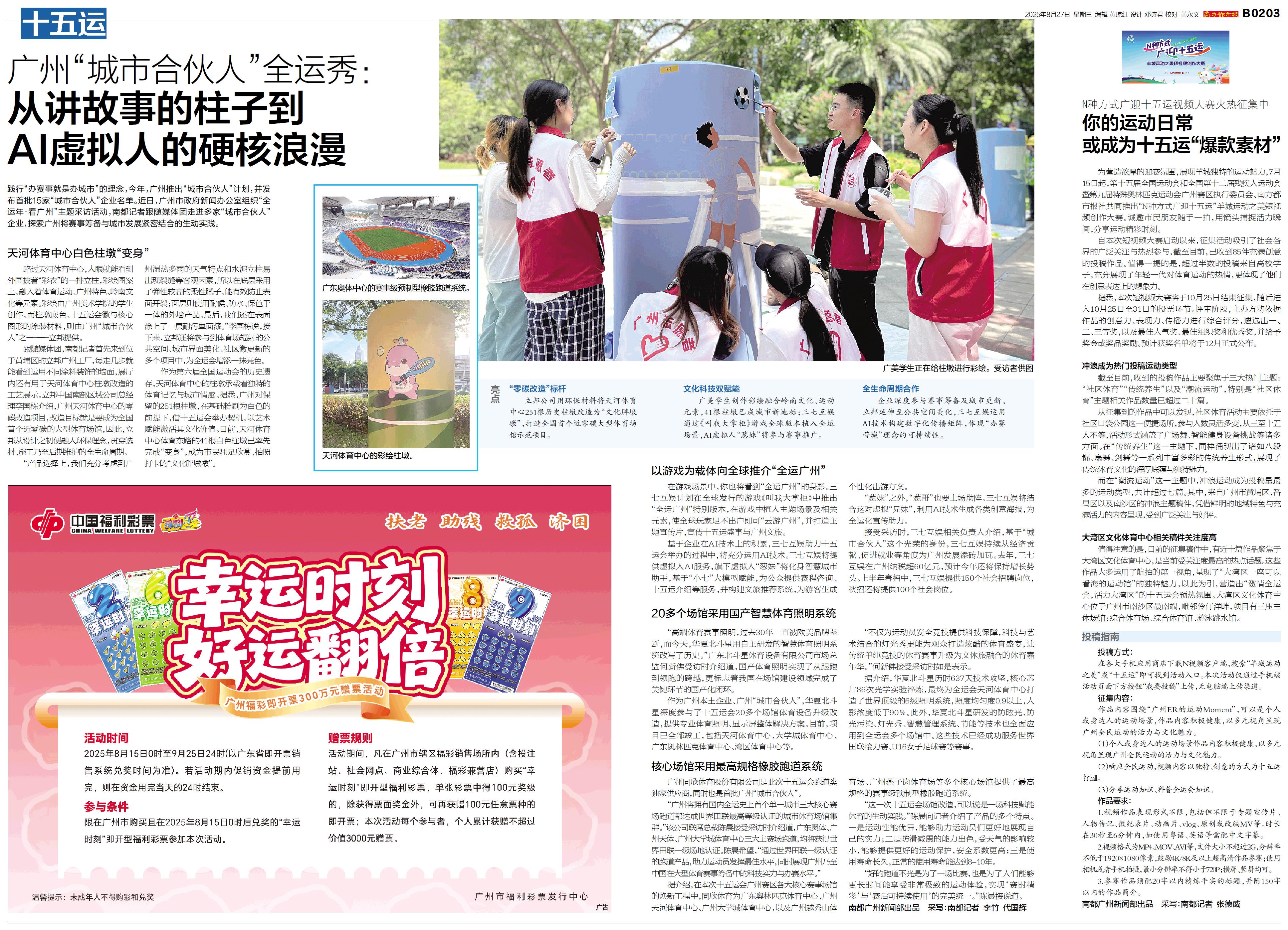 为营造浓厚的迎赛氛围,展现羊城独特的运动魅力,7月15日起,第十五届全国运动会和全国第十二届残疾人运动会暨第九届特殊奥林匹克运动会广州赛区执行委员会、南方都市报社共同推出“N种方式广迎十五运”羊城