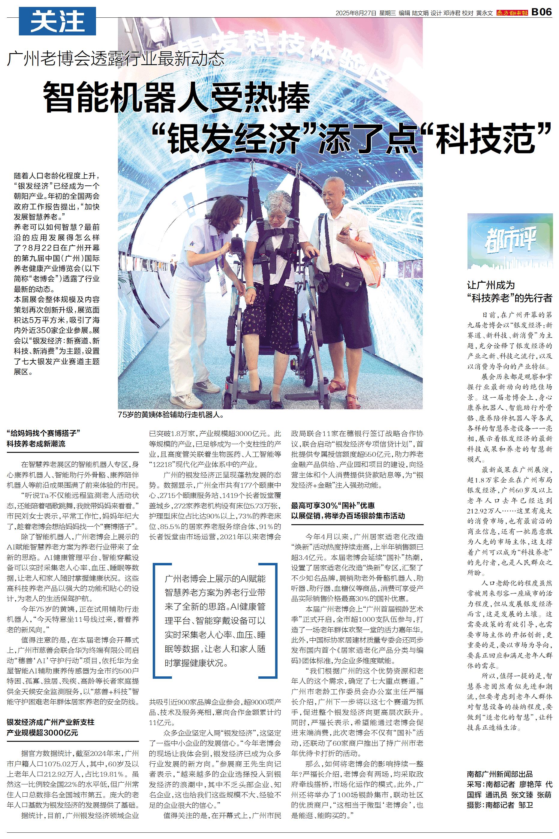 随着人口老龄化程度上升,“银发经济”已经成为一个朝阳产业。年初的全国两会政府工作报告提出,“加快发展智慧养老。” 养老可以如何智慧?最前沿的应用发展得怎么样了?8月22日在广州开幕的第九届中国(