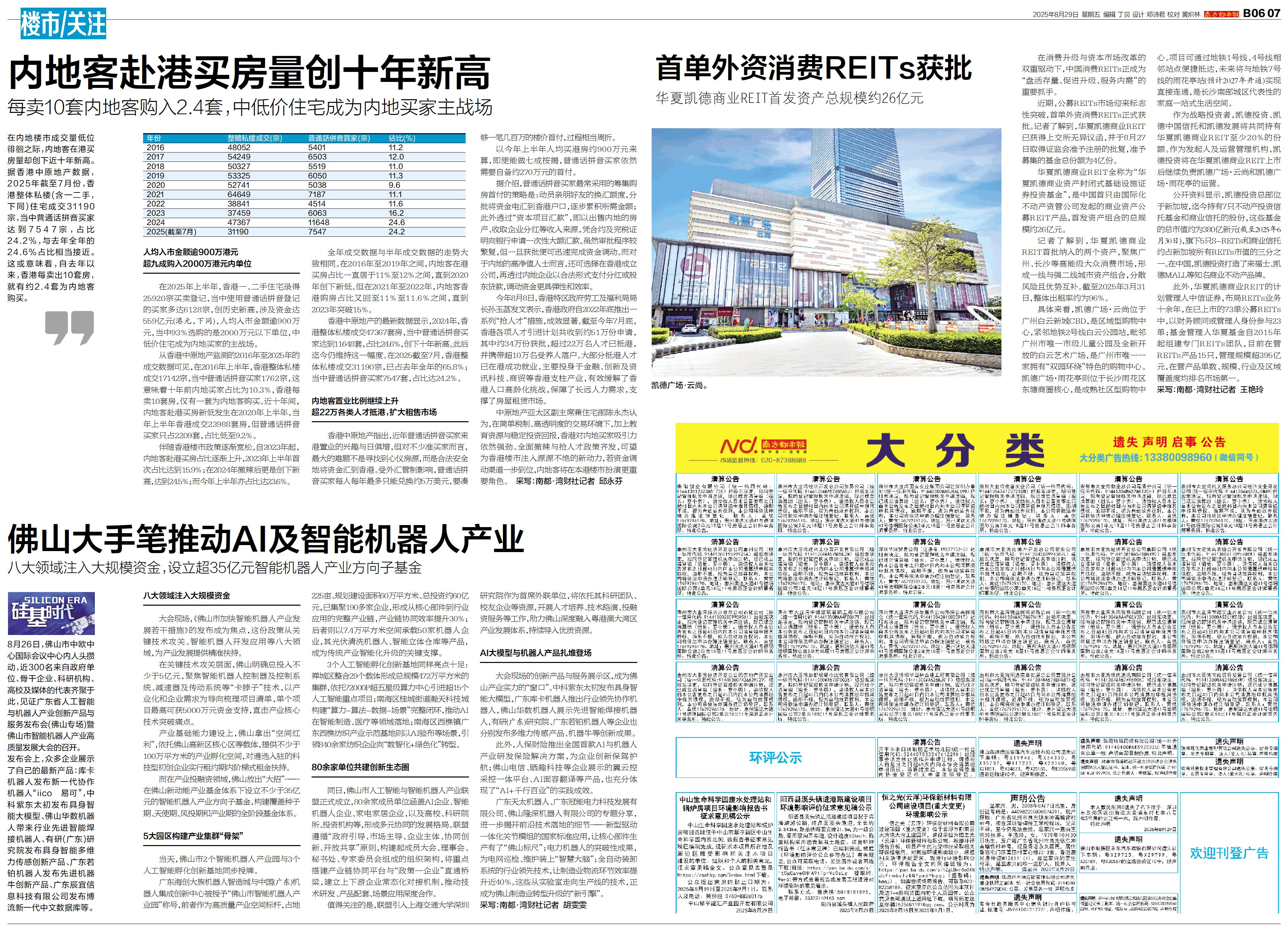 在内地楼市成交量低位徘徊之际,内地客在港买房量却创下近十年新高。 据香港中原地产数据,2025年截至7月份,香港整体私楼(含一二手,下同)住宅成交31190宗,当中普通话拼音买家达到7547宗,