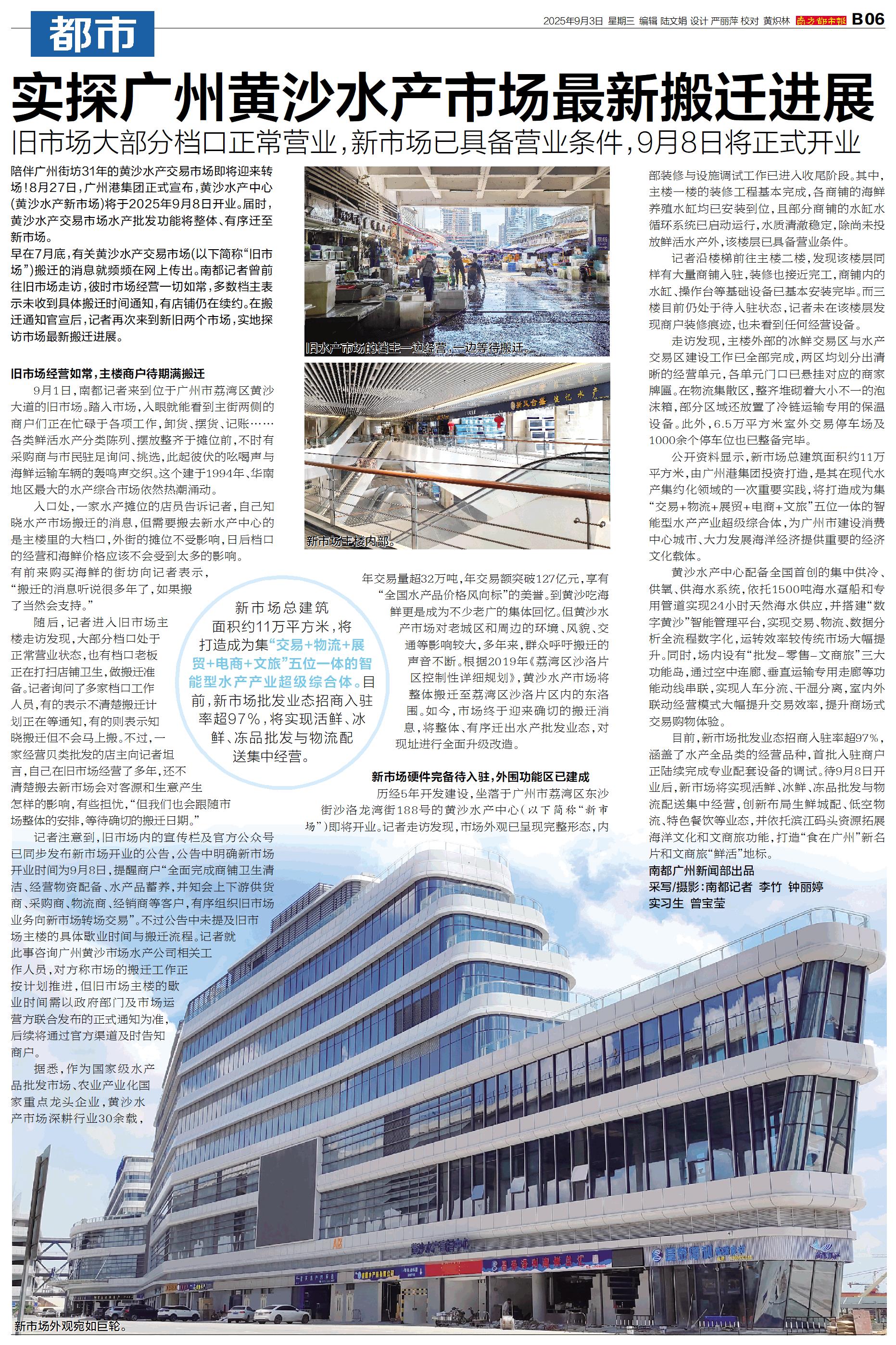 陪伴广州街坊31年的黄沙水产交易市场即将迎来转场!8月27日,广州港集团正式宣布,黄沙水产中心(黄沙水产新市场)将于2025年9月8日开业。届时,黄沙水产交易市场水产批发功能将整体、有序迁至新市场。