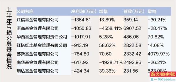 值得注意的是,2025年上半年,有7家基金公司出现亏损,分别为江信基金、浙商基金、华西基金、红塔红土基金、树新基金、南华基金与瑞达基金。其中,亏损最严重的是江信基金,今年上半年亏损了1364.61万元。