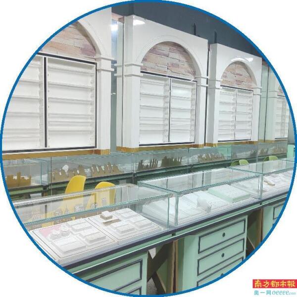 一珠宝产业园内,店铺撤租后留下的空展柜。