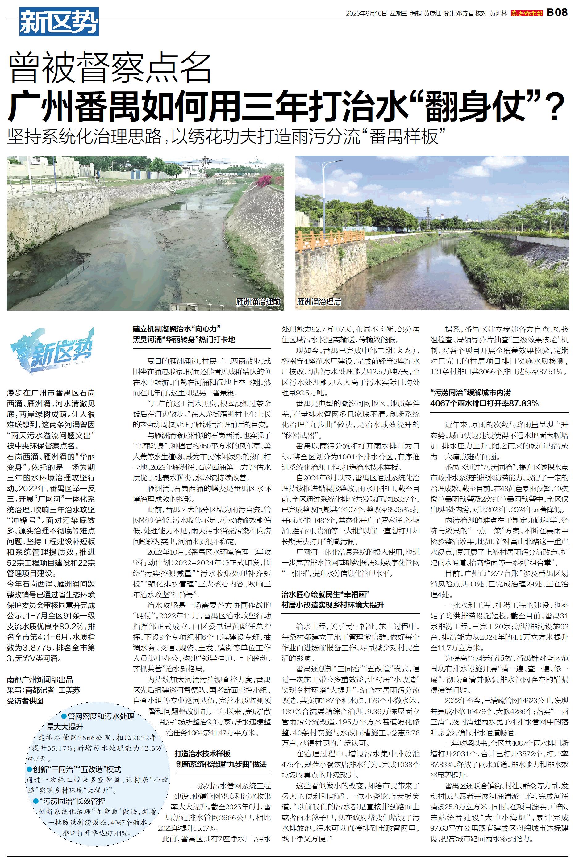 漫步在广州市番禺区石岗西涌、雁洲涌,河水清澈见底,两岸绿树成荫。让人很难联想到,这两条河涌曾因“雨天污水溢流问题突出”被中央环保督察点名。 石岗西涌、雁洲涌的“华丽变身”,依托的是一场为期三年的