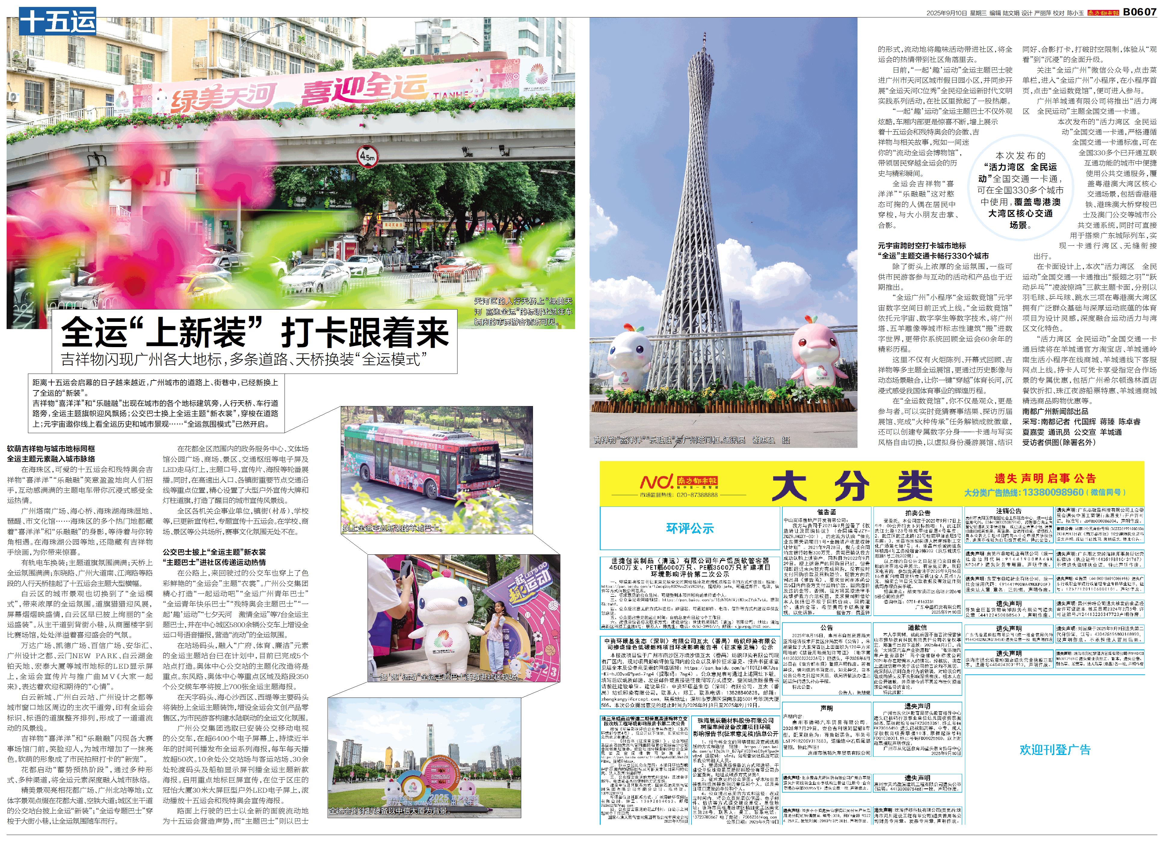 距离十五运会启幕的日子越来越近,广州城市的道路上、街巷中,已经新换上了全运的“新装”。 吉祥物“喜洋洋”和“乐融融”出现在城市的各个地标建筑旁,人行天桥、车行道路旁,全运主题旗帜迎风飘扬;公交巴