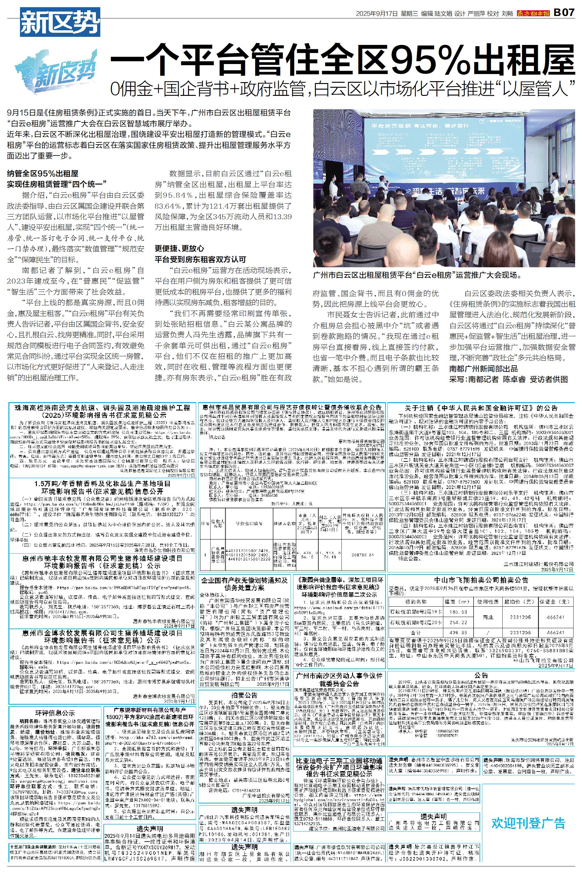 9月15日是《住房租赁条例》正式实施的首日。当天下午,广州市白云区出租屋租赁平台“白云e租房”运营推广大会在白云区智慧城市展厅举办。 近年来,白云区不断深化出租屋治理,围绕建设平安出租屋打造新的