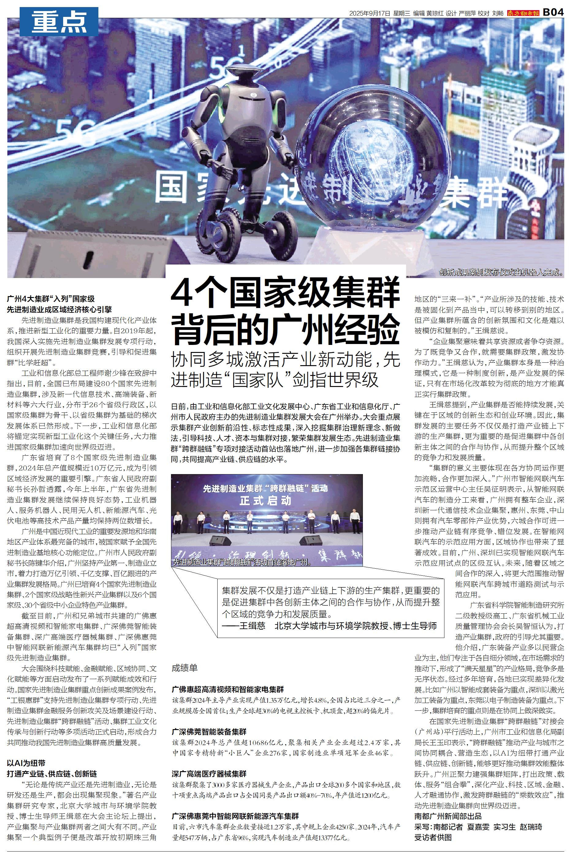集群发展不仅是打造产业链上下游的生产集群,更重要的是促进集群中各创新主体之间的合作与协作,从而提升整个区域的竞争力和发展质量。 ——王缉慈 北京大学城市与环境学院教授、博士生导师 日前,由工业