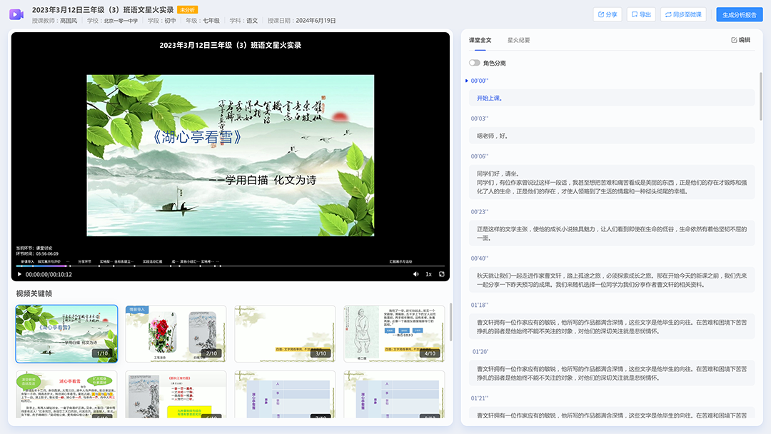 现在AI辅助教学教研的工具多了“人情味”。郭红杰举例,科大讯飞率先推出的语言测评工具,学生跟读后,能识别发音正误与英语口语水平。“这固然给同学们带来惊喜,但他们更需要表扬,AI恰好能做到。”她介绍,AI能记住同学们的点滴进步,及时给出正向反馈。这个过程中,工具仿佛有了人的温度与情感。