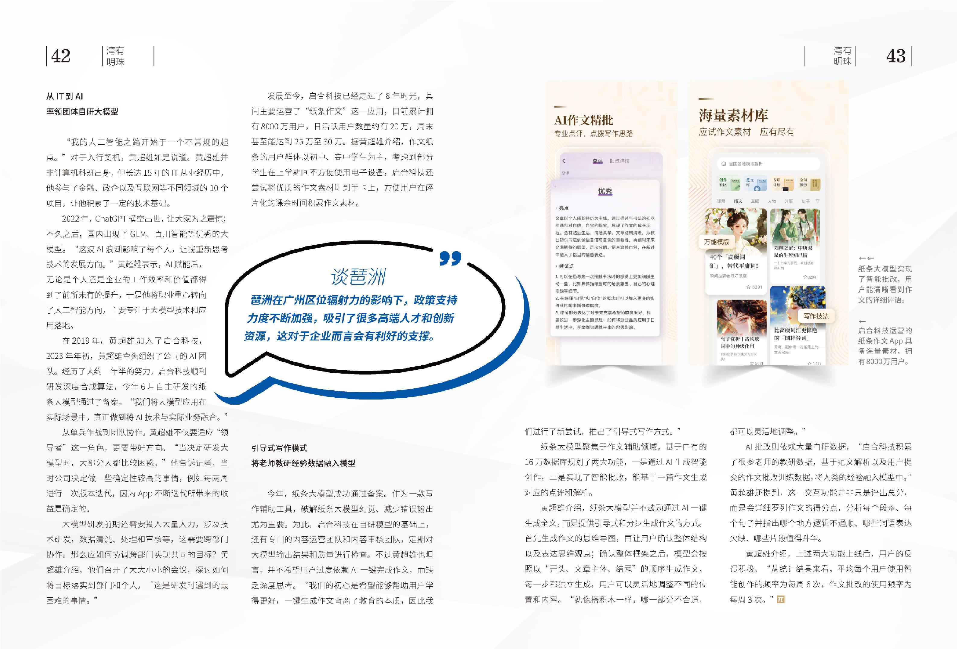 启合科技运营的纸条作文APP具备海量素材,吸引了8000万用户。 纸条大模型实现了智能批改,用户能清晰看到作文的详细评语。