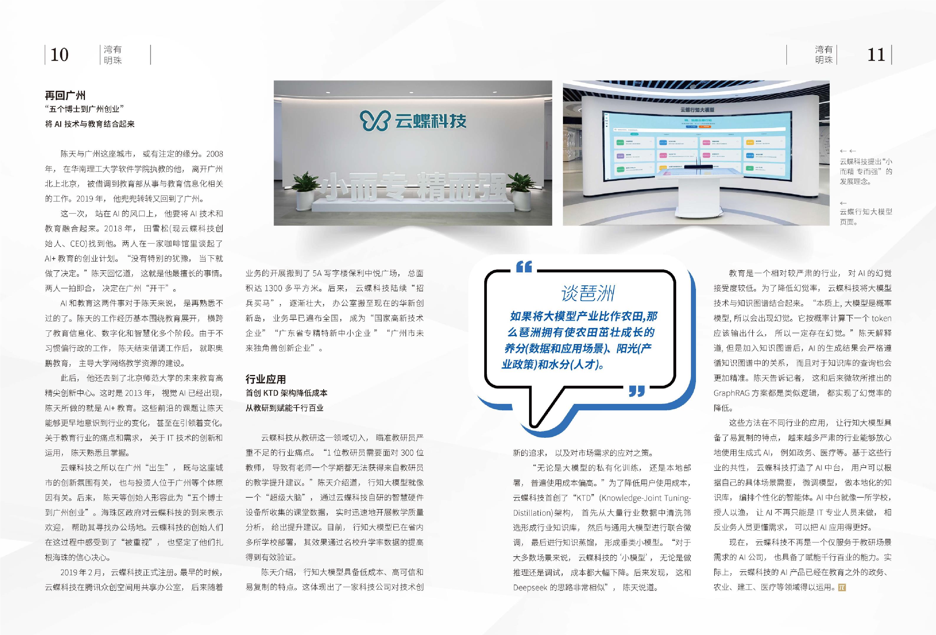 云蝶科技提出“小而精 专而强”的发展理念。 云蝶行知大模型页面。 陈天 广州云蝶科技有限公司CTO,汕头大学工