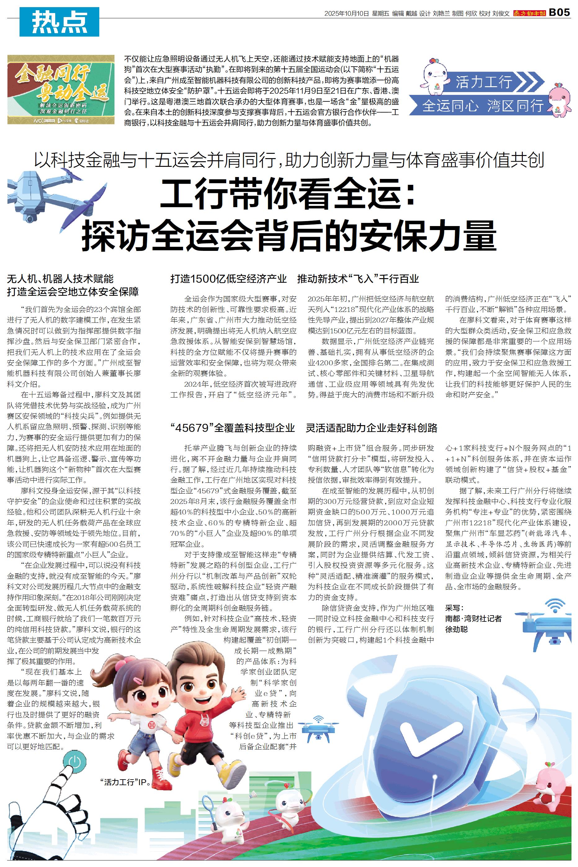 不仅能让应急照明设备通过无人机飞上天空,还能通过技术赋能支持地面上的“机器狗”首次在大型赛事活动“执勤”。在即将到来的第十五届全国运动会(以下简称“十五运会”)上,来自广州成至智能机器科技有限公司