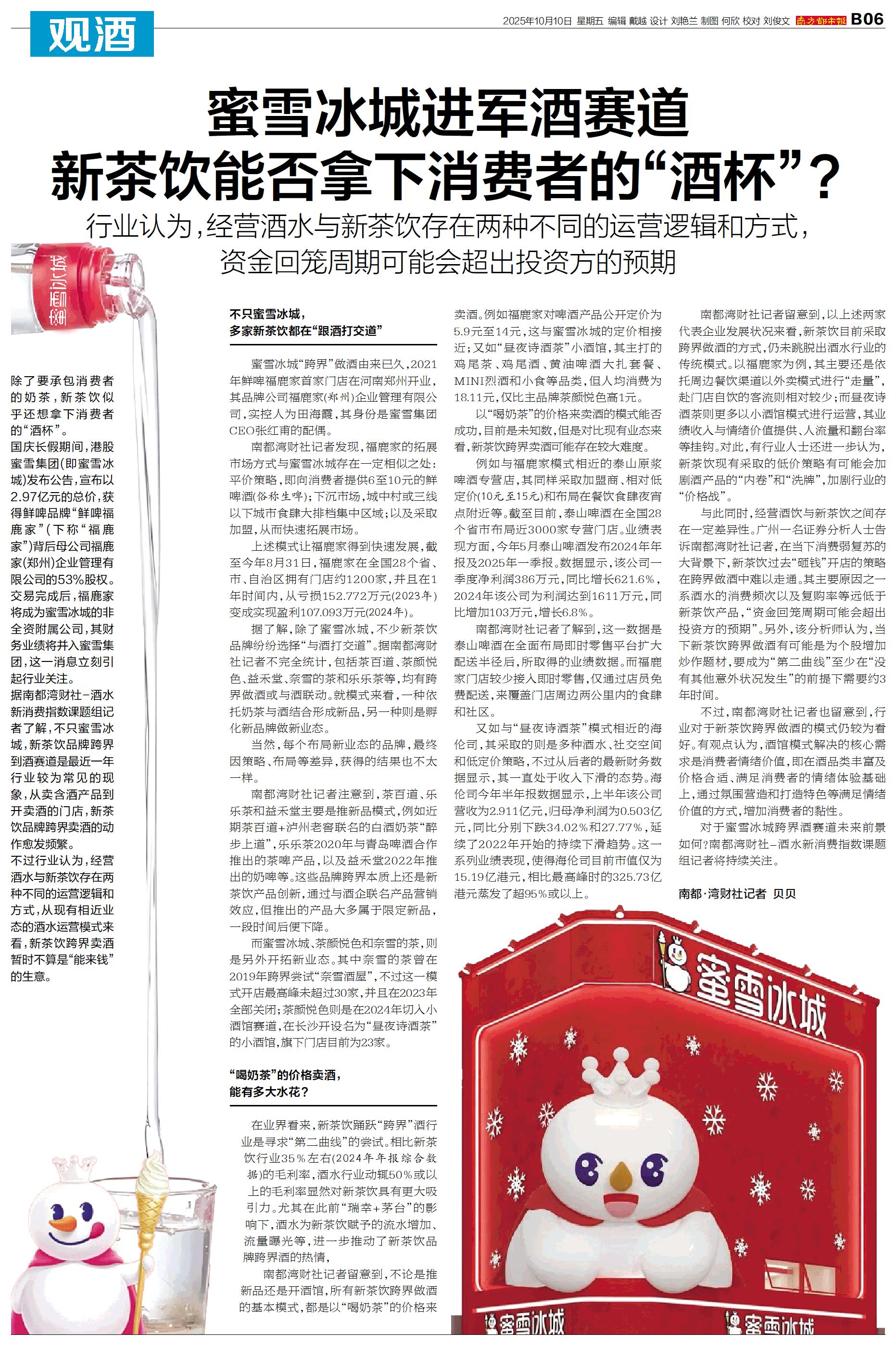 蜜雪冰城进军酒赛道 新茶饮能否拿下消费者的“酒杯”?