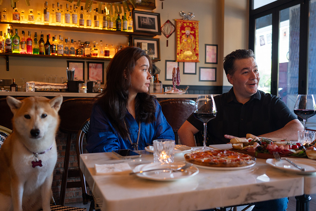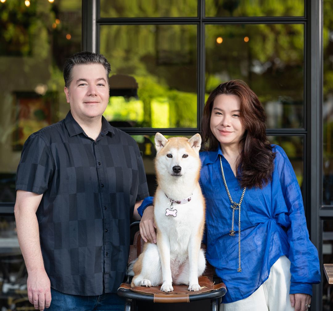 Nathan和妻子ZI,带着他们的狗狗Coffee在山边餐吧。南都·创享湾区记者 钟锐钧 摄