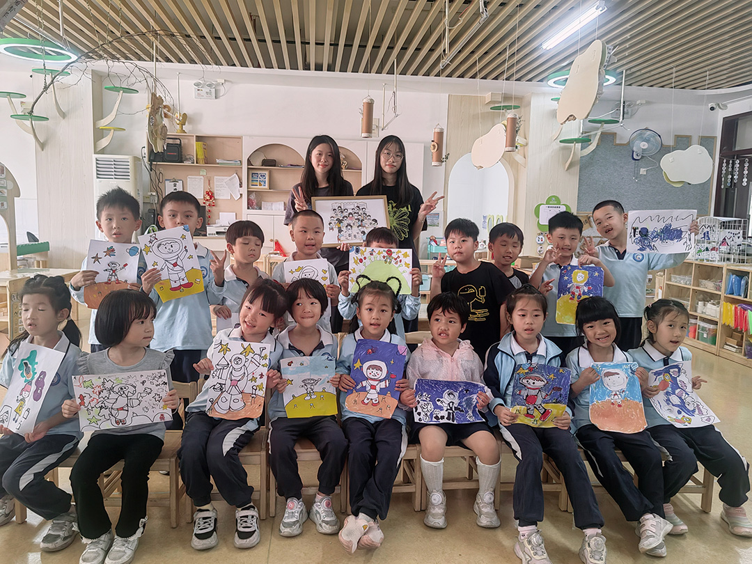 公司设计师们为周边幼儿园小朋友上公益美术课,让他们画出长大最想做的职业。受访者供图