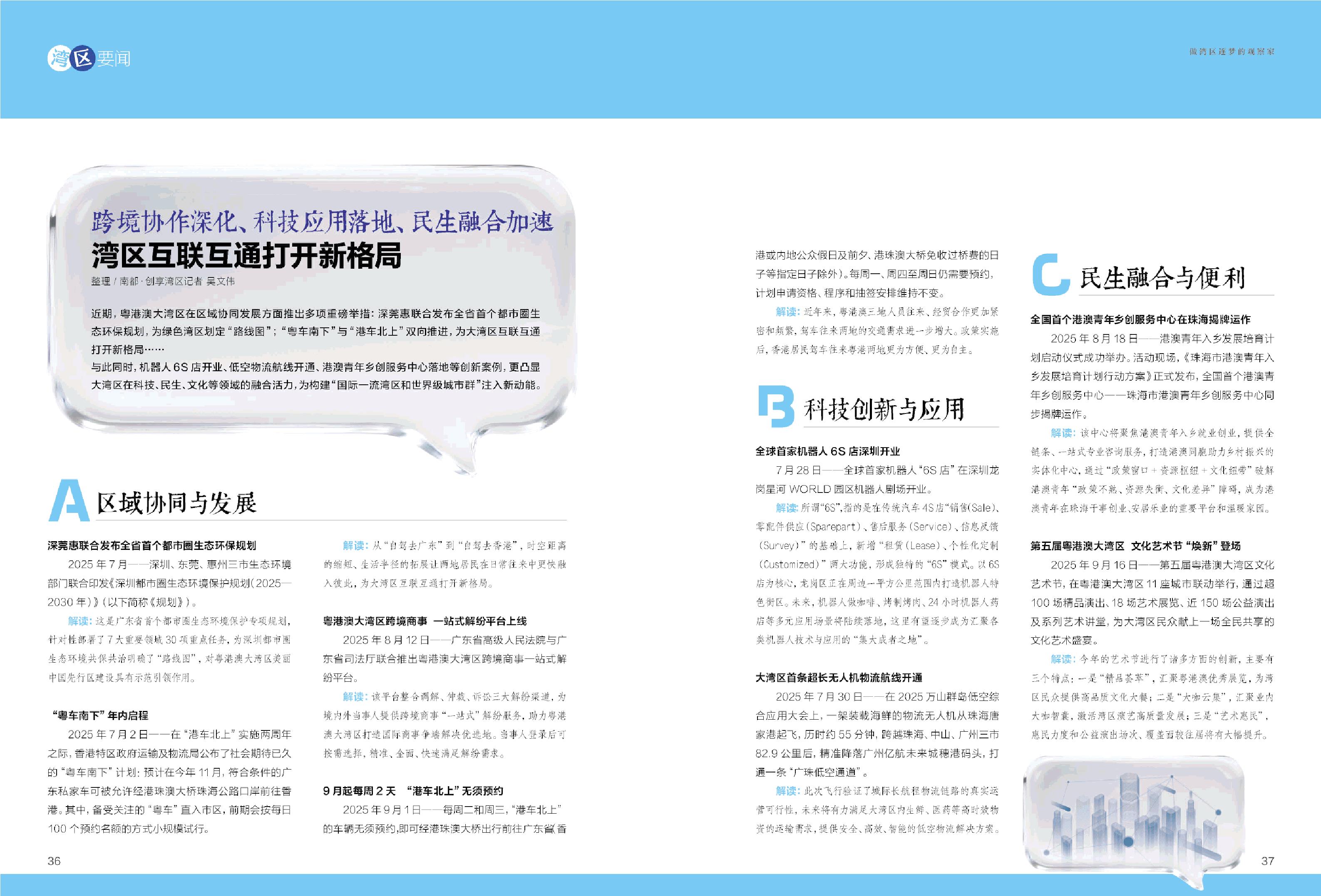 整理 / 南都·创享湾区记者 吴文伟 近期,粤港澳大湾区在区域协同发展方面推出多项重磅举措:深莞惠联合发布全省首个都市圈生态环保规划,为绿色湾区划定“路线图”;“粤车南下”与“港车北上”双向