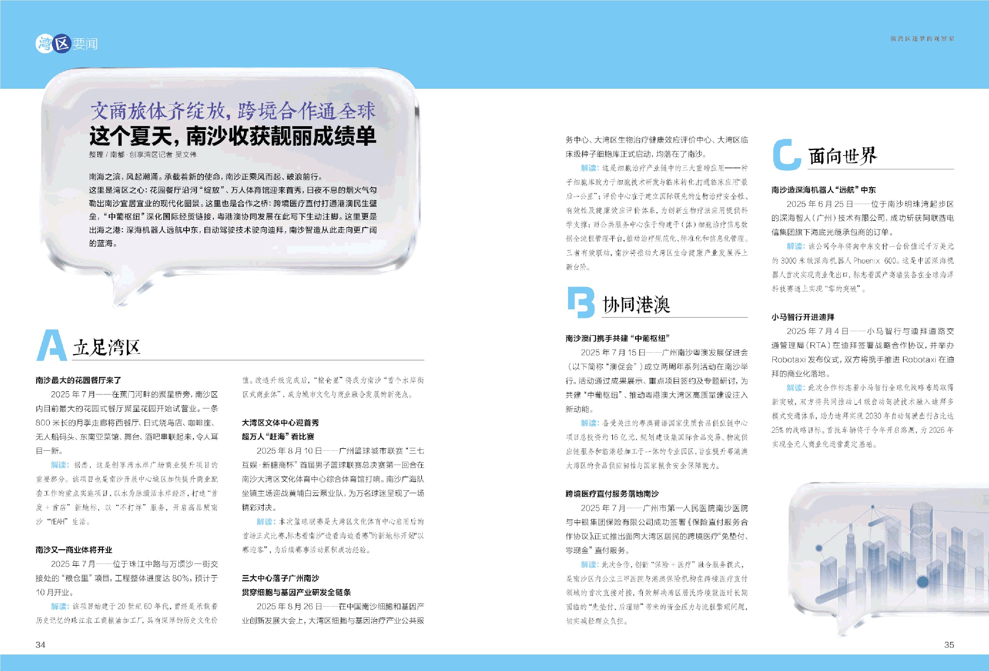 整理 / 南都·创享湾区记者 吴文伟 南海之滨,风起潮涌。承载着新的使命,南沙正乘风而起、破浪前行。 这里是湾区之心:花园餐厅沿河“绽放”、万人体育馆迎来首秀,日夜不息的烟火气勾勒出南沙宜