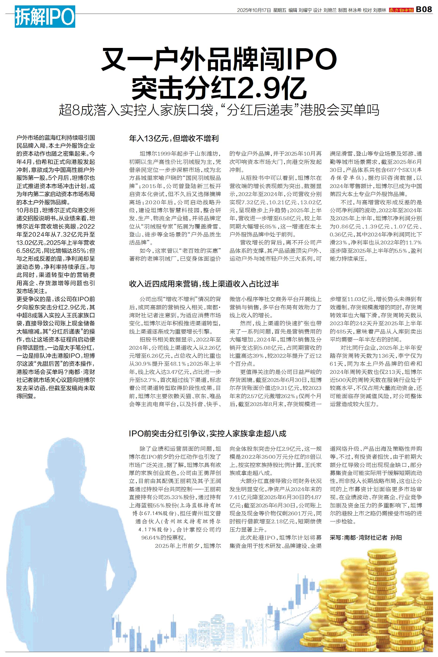 户外市场的蓝海红利持续吸引国民品牌入局,本土户外服饰企业的资本动作也随之密集起来。今年4月,伯希和正式向港股发起冲刺,意欲成为中国高性能户外服饰第一股。5个月后,坦博尔也正式推进资本市场冲击计划,