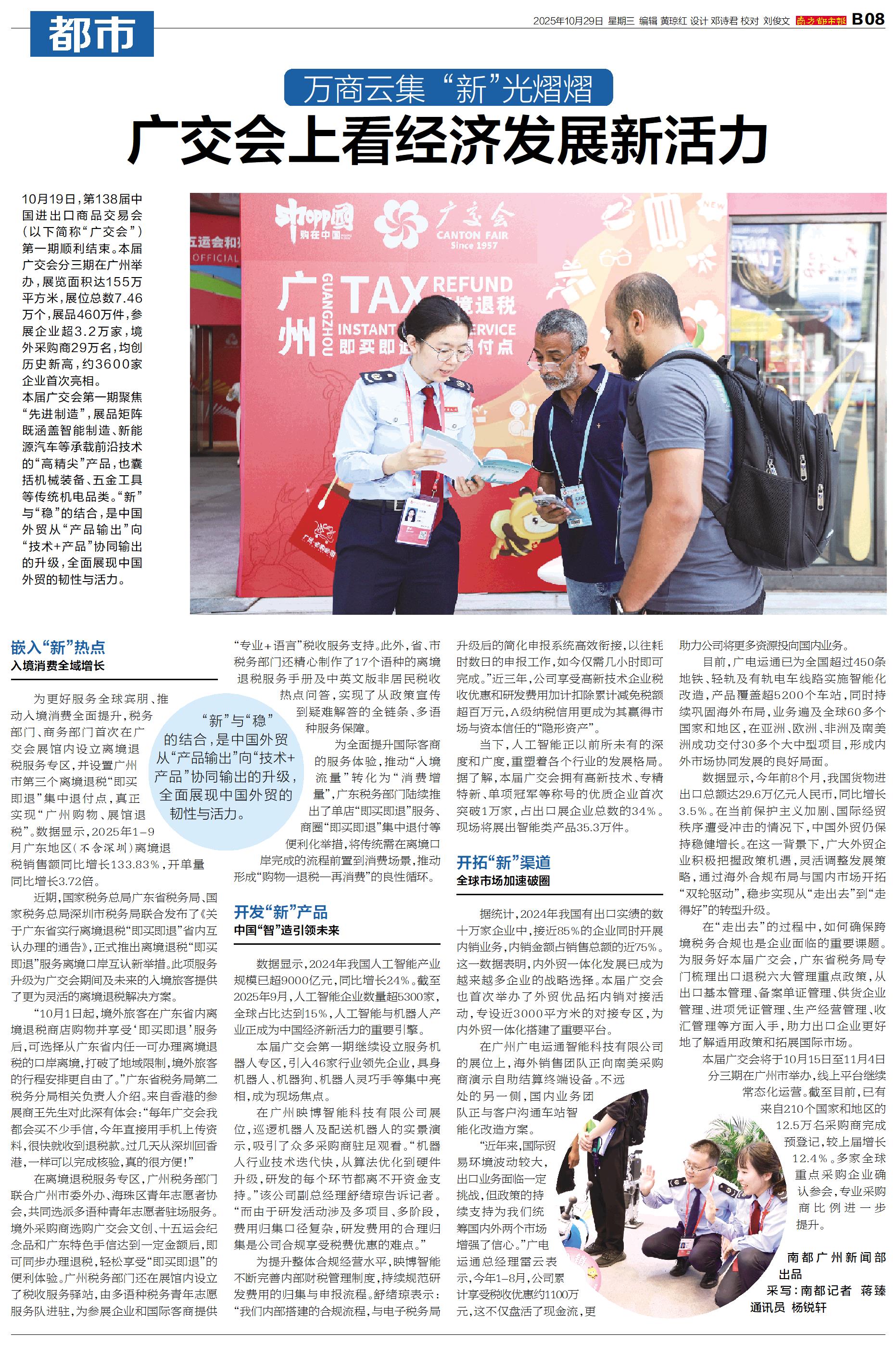 10月19日,第138届中国进出口商品交易会(以下简称“广交会”)第一期顺利结束。本届广交会分三期在广州举办,展览面积达155万平方米,展位总数7.46万个,展品460万件,参展企业超3.2万家,