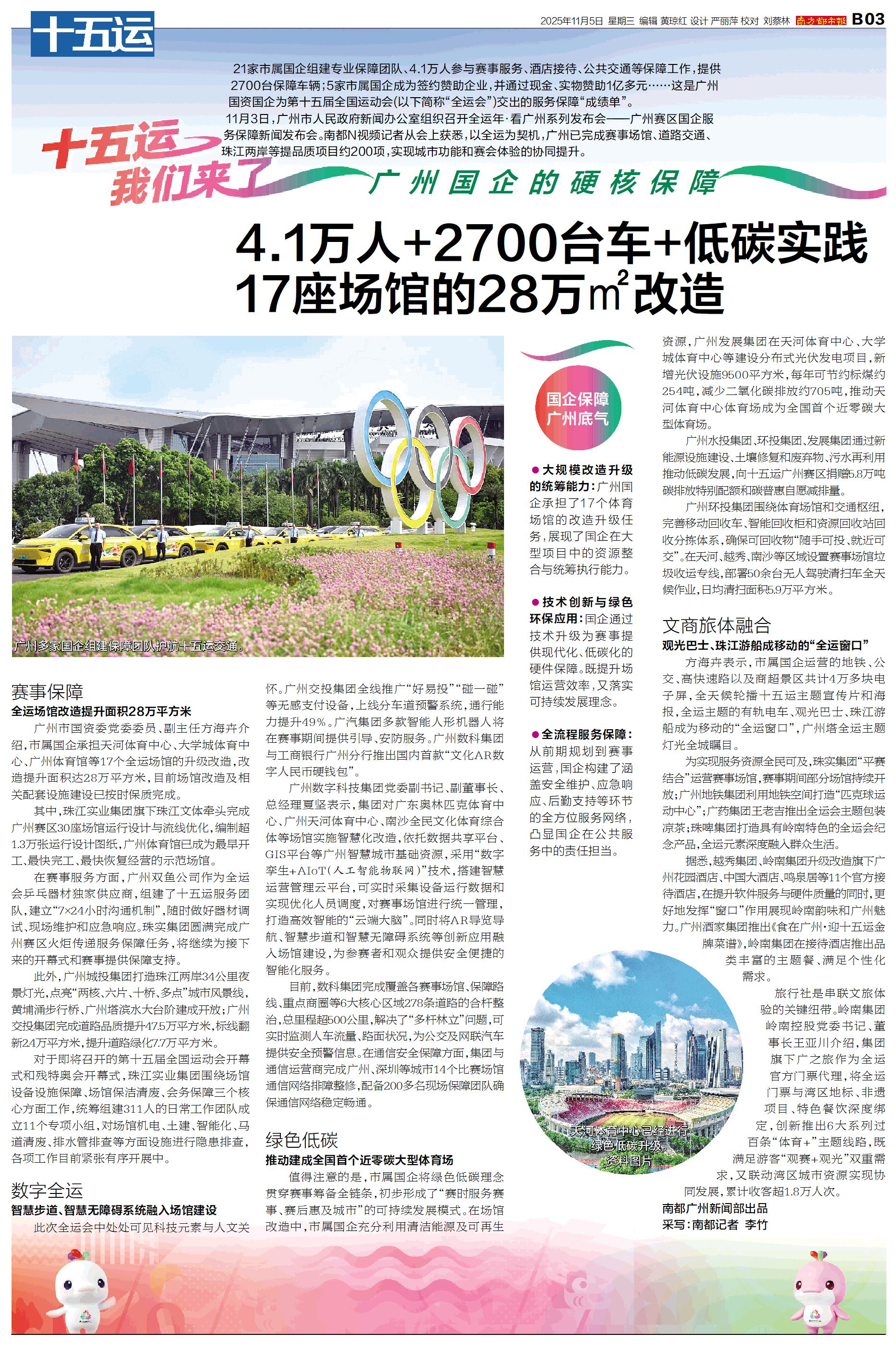 21家市属国企组建专业保障团队、4.1万人参与赛事服务、酒店接待、公共交通等保障工作,提供2700台保障车辆;5家市属国企成为签约赞助企业,并通过现金、实物赞助1亿多元……这是广州国资国企为第十五