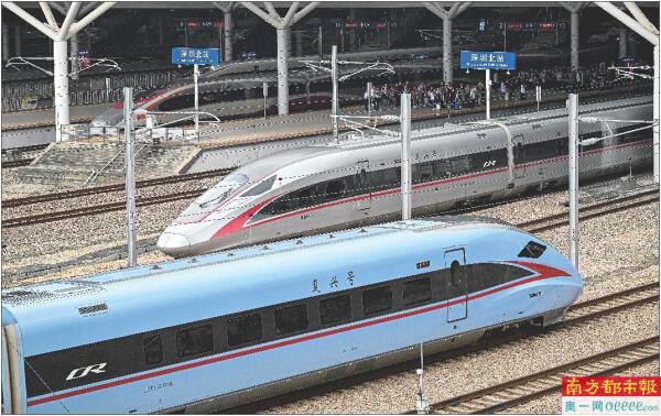 放眼全国高铁版图,同样高频次、高密度、客流旺,广深港铁路与京沪高铁,如同贯通中国南北经济脉络的两条“大动脉”,有着相似的繁忙景象。