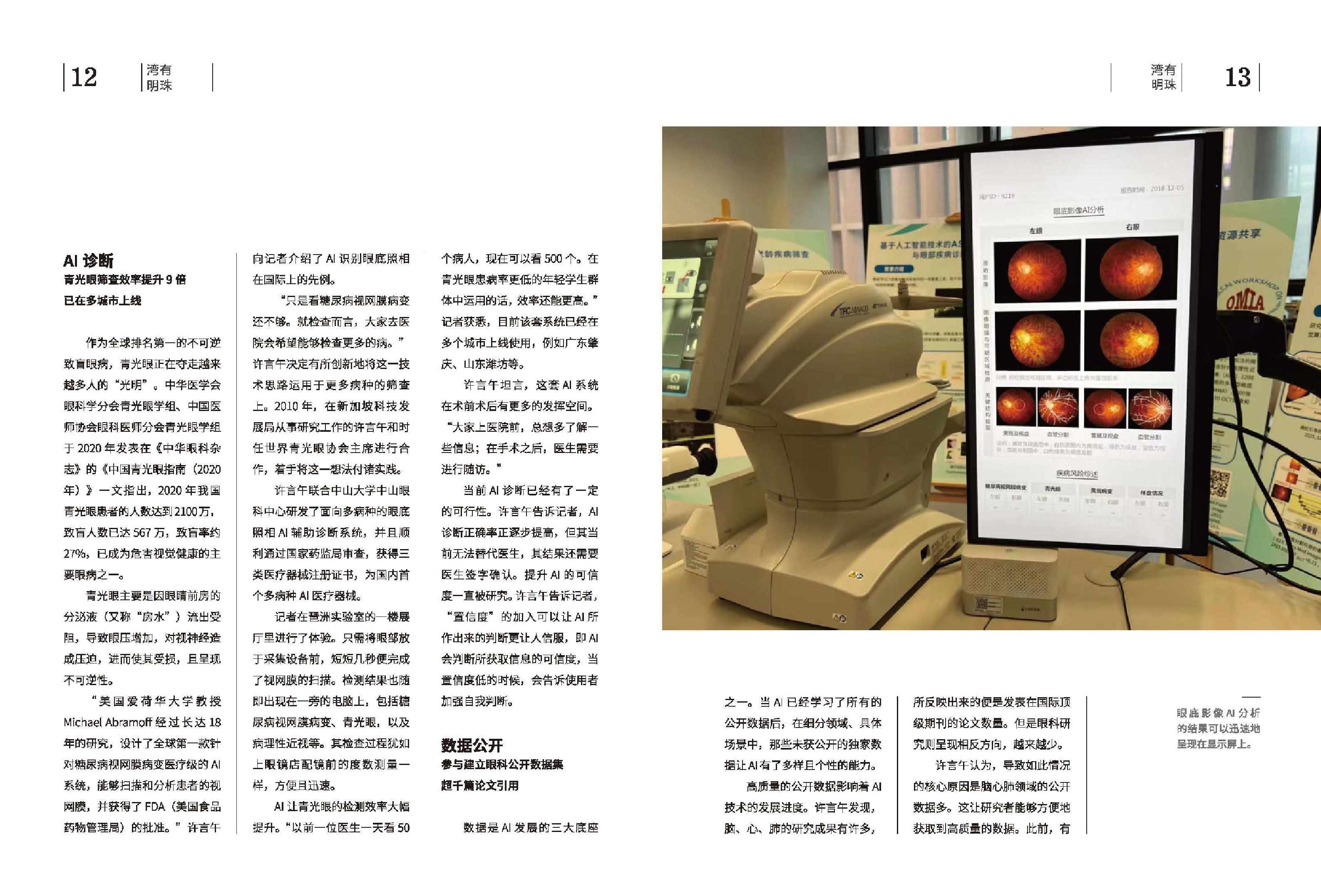 眼底影像AI分析的结果可以迅速地呈现在显示屏上。 人物名片: 许言午,琶洲实验室研究员,华南理工大学未来技术学院教授、博士生导师,世界卫生组织