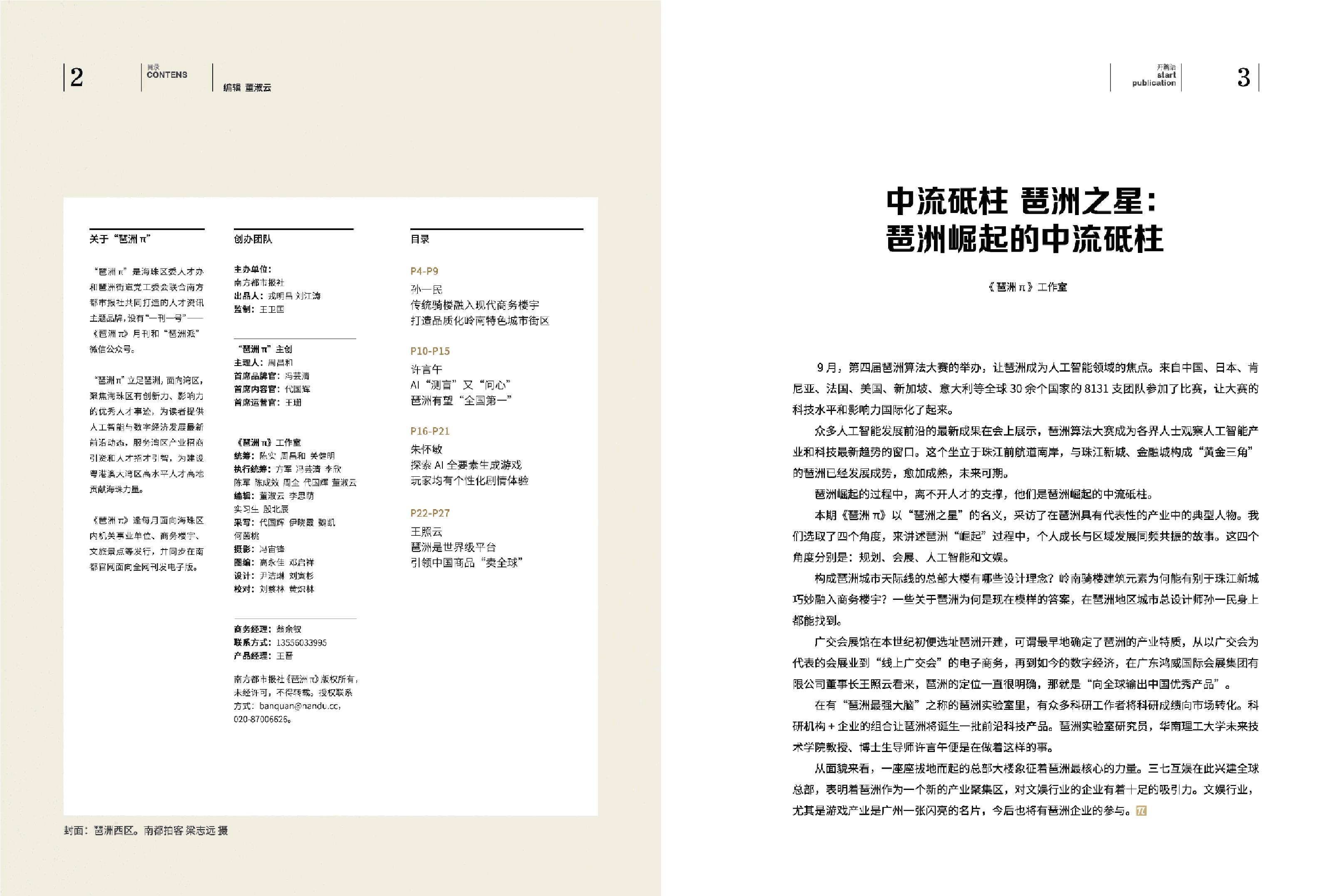 《琶洲π》工作室 9月,第四届琶洲算法大赛的举办,让琶洲成为人工智能领域的焦点。来自中国、日本、肯尼亚、法国、美国、新加坡、意大利等全球30余个国家的8131