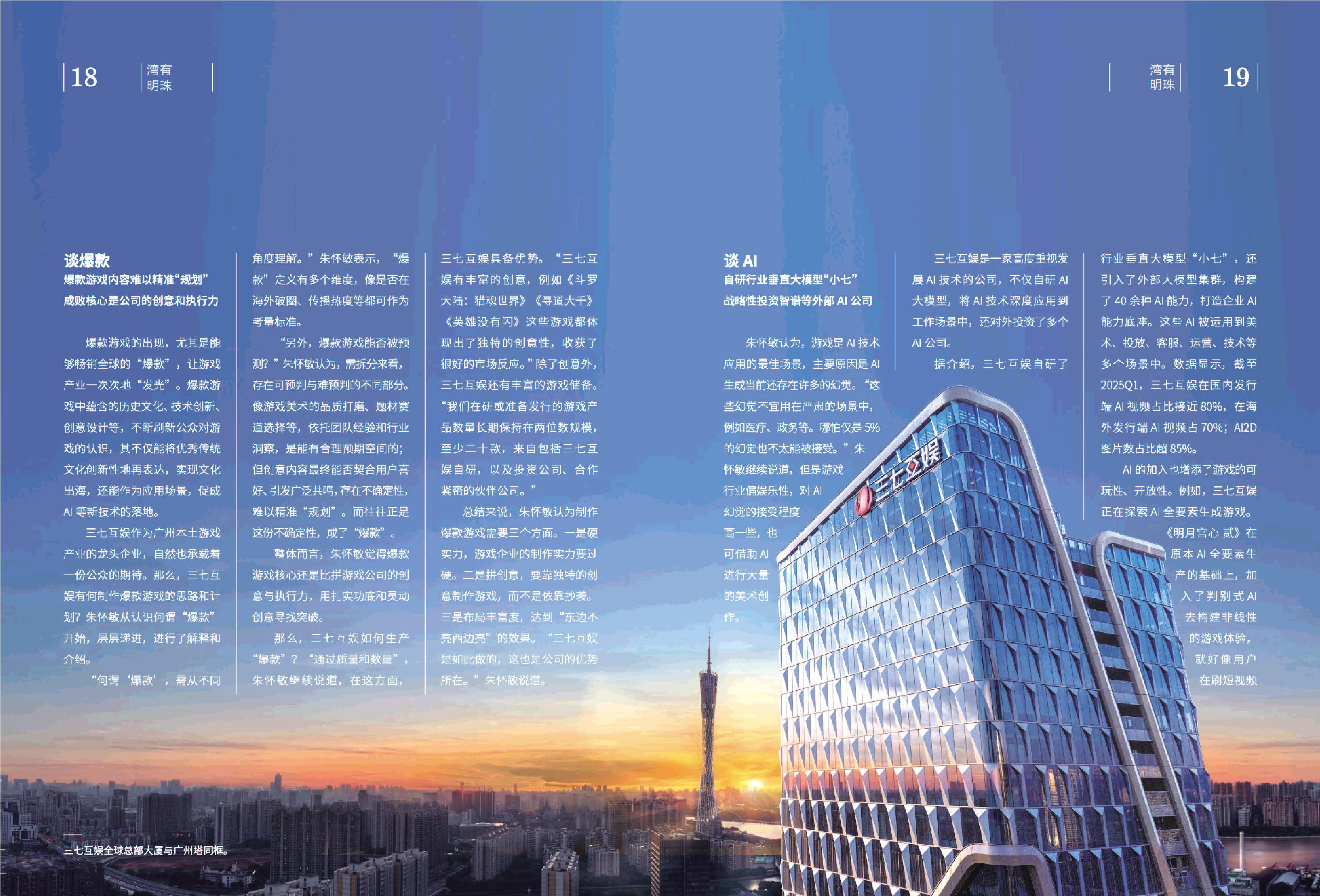 三七互娱全球总部大厦与广州塔同框。 人物名片: 朱怀敏,三七互娱集团副总裁,分管技术中心和战略中心 随着广州科韵路游戏产业的外溢