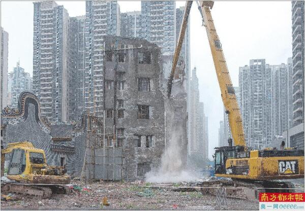 随着冼村最后两栋村屋被拆迁,历时15年的旧改僵局得以顺利破解。南都记者 黎湛均 张志韬 摄