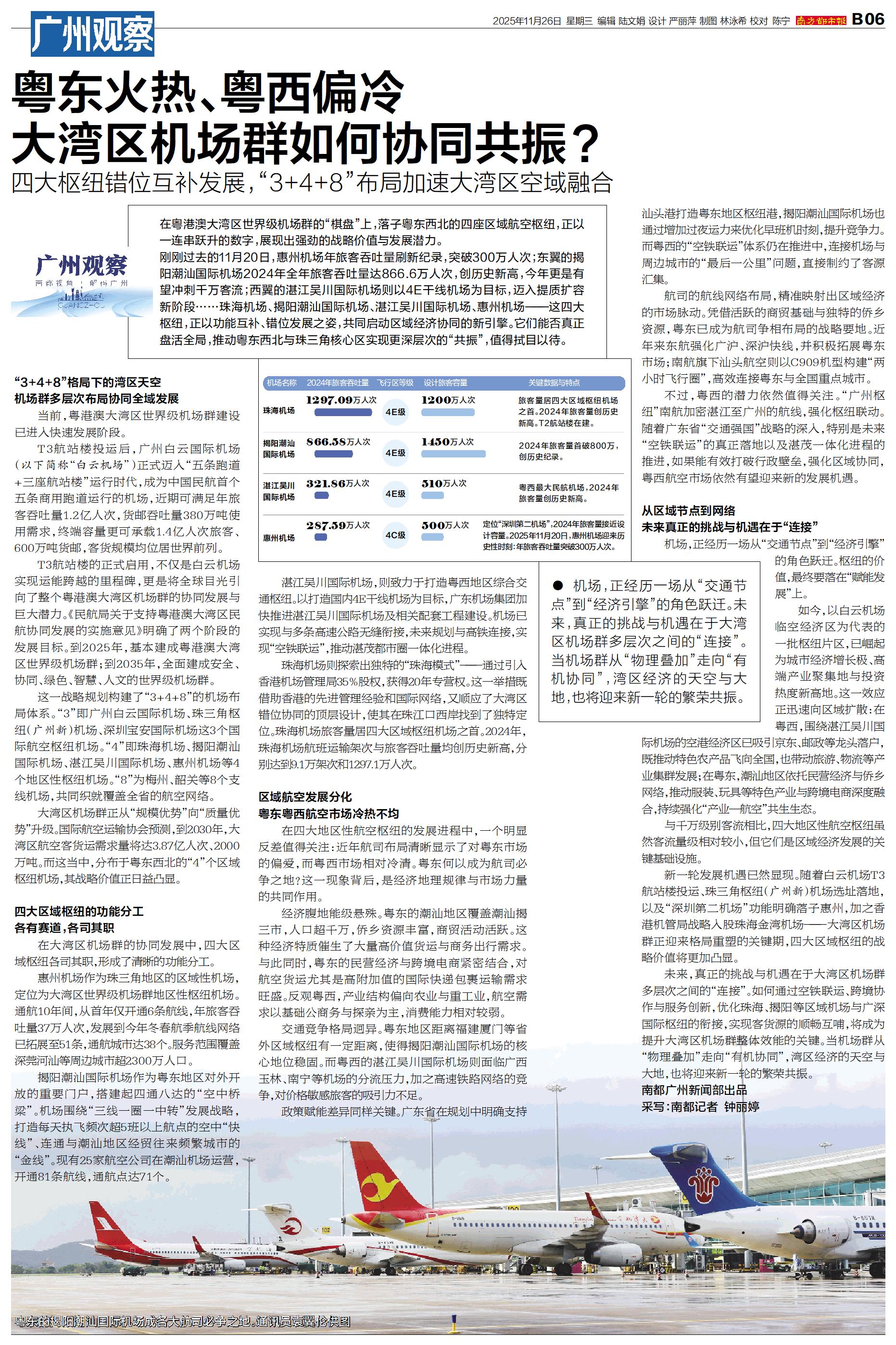 粤东火热、粤西偏冷 大湾区机场群如何协同共振?