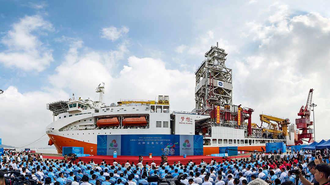 10月9日,第十五届全国运动会和全国第十二届残疾人运动会暨第九届特殊奥林匹克运动会火种采集仪式(以下简称“十五运会和残特奥会火种采集仪式”)在广州南沙区的海洋地质调查局(以下简称广海局)科考码头举行。本次火种的“源火”来自我国南海北部海域水深1522米处的可燃冰。这是全球大型运动会历史上首次在深海海底获取“源火”。
