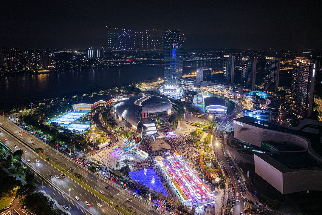 每当夜幕初垂,数百架无人机悄然升空,以天幕为画布,绘出流动的光影诗篇;不远处,非遗鱼灯在汉服巡游的队伍中摇曳生姿,与现代网球的动感活力交织成一幅奇妙的图景。舞台区流淌着摇滚、怀旧与民族风的乐章,而香气四溢的美食摊位则牵引着人们的脚步……在这里,网球的激情与城市的闲适达成了一种微妙的平衡,让每个人都能找到属于自己的方式,参与并定义着这个秋日夜晚。