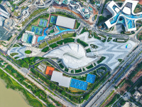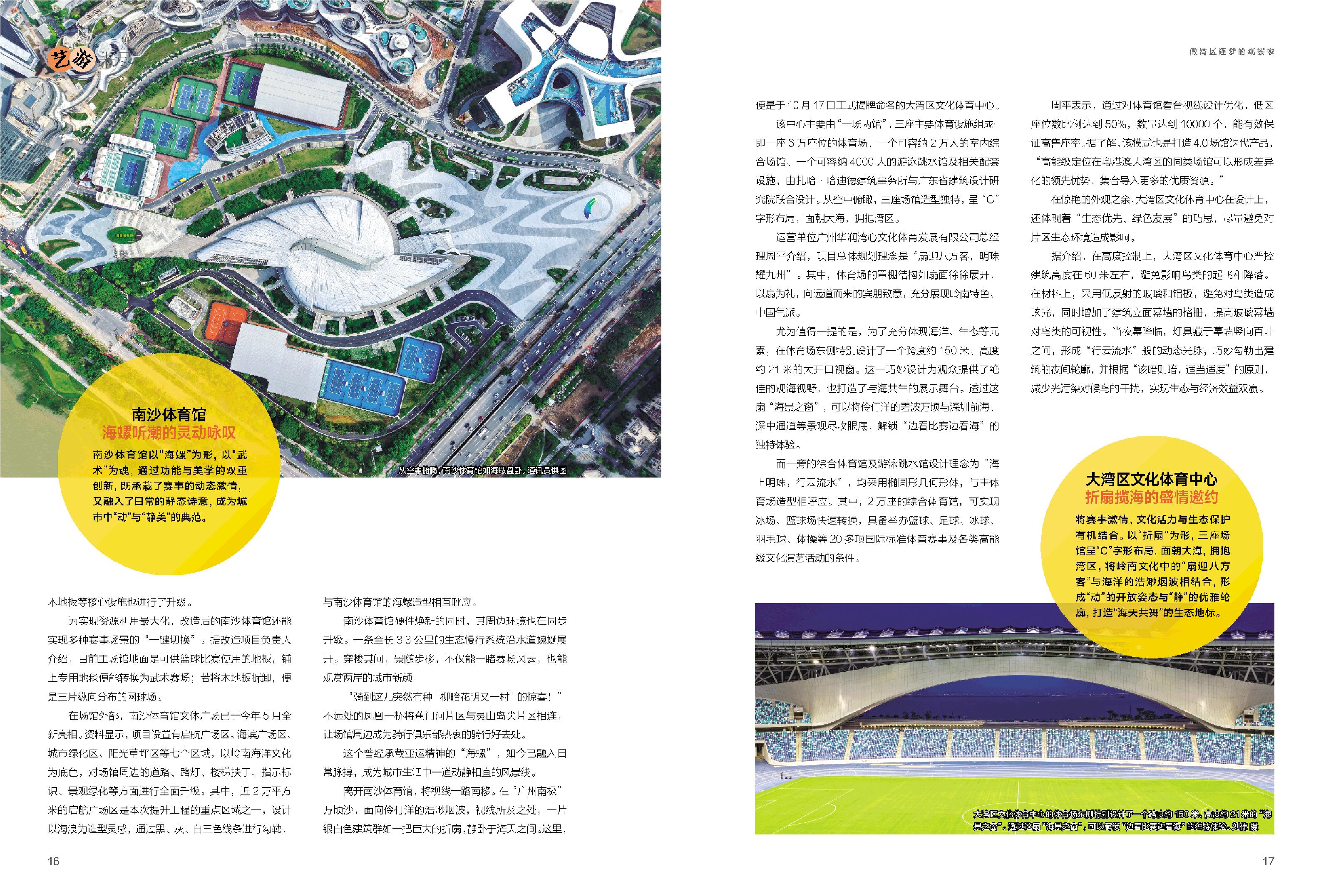 从空中俯瞰,南沙体育馆如海螺盘卧。通讯员供图 在体育场东侧特别设计了一个跨度约150米、高度约21米的“海景之窗”。透过这扇“海景之窗”,可以