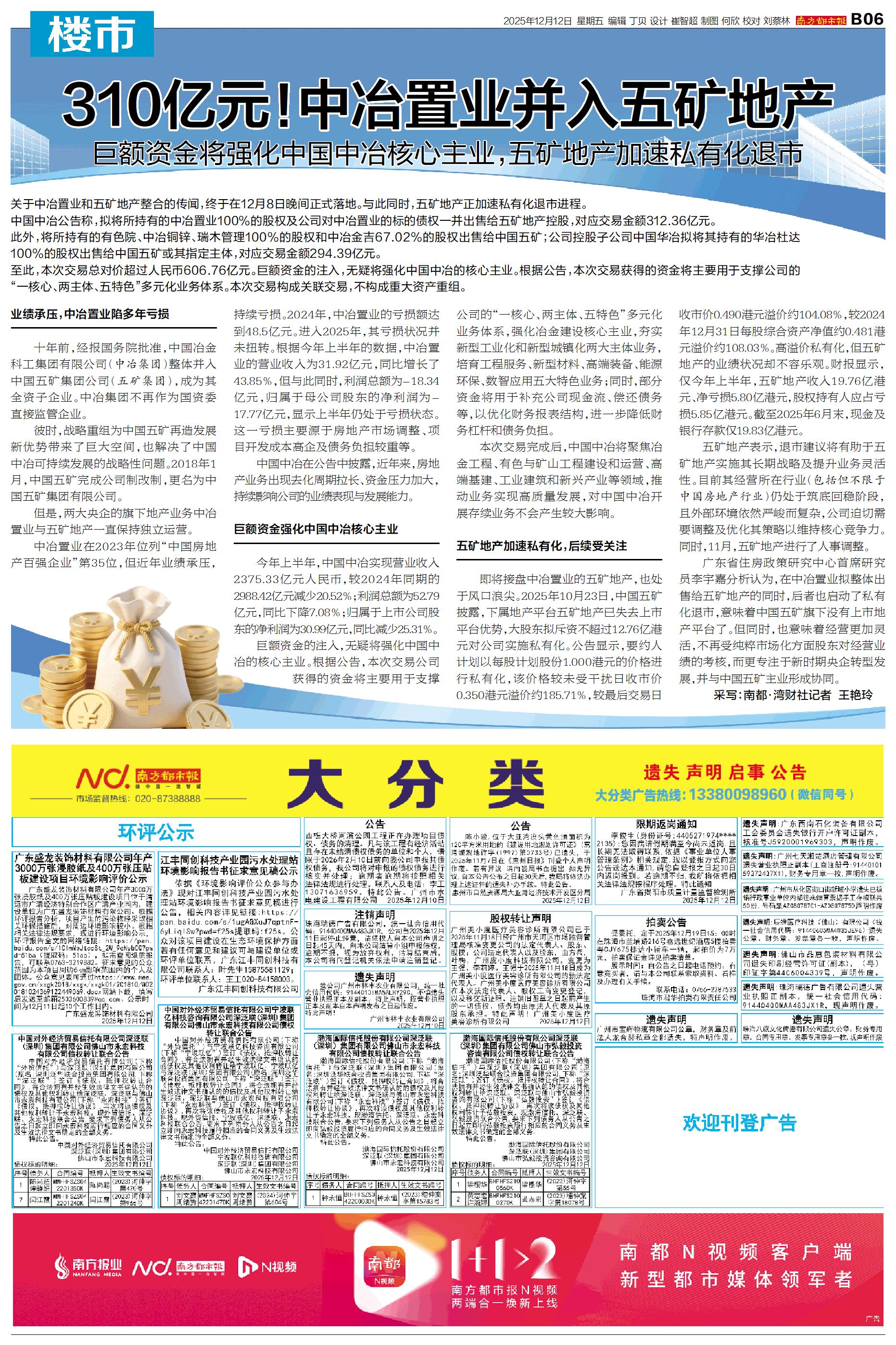 310亿元!中冶置业并入五矿地产