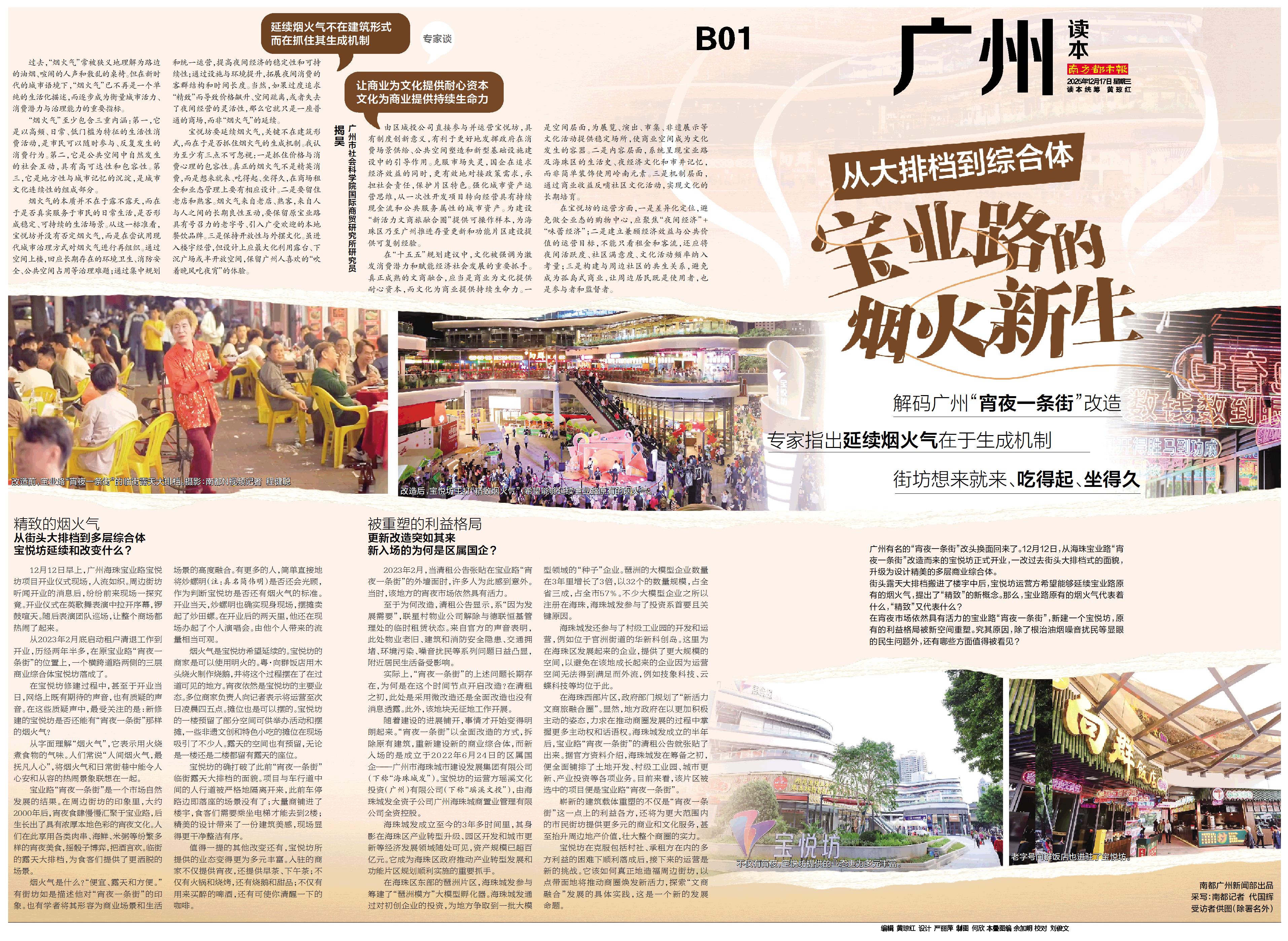 解码广州“宵夜一条街”改造 专家指出延续烟火气在于生成机制 街坊想来就来、吃得起、坐得久 广州有名的“宵夜一条街”改头换面回来了。12月12日,从海珠宝业路“宵夜一条街”改造而来的宝悦坊正式