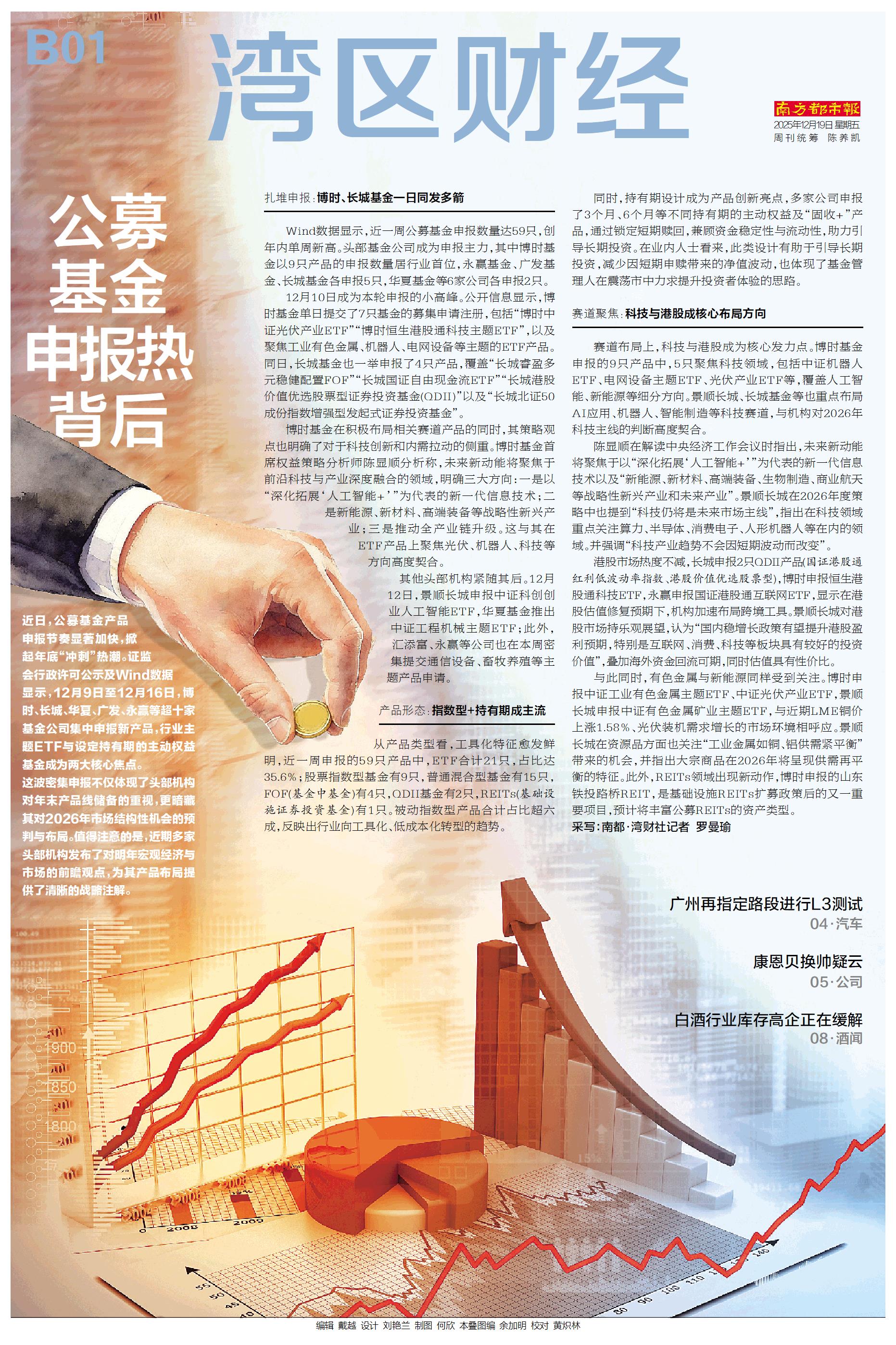 近日,公募基金产品申报节奏显著加快,掀起年底“冲刺”热潮。证监会行政许可公示及Wind数据显示,12月9日至12月16日,博时、长城、华夏、广发、永赢等超十家基金公司集中申报新产品,行业主题ETF