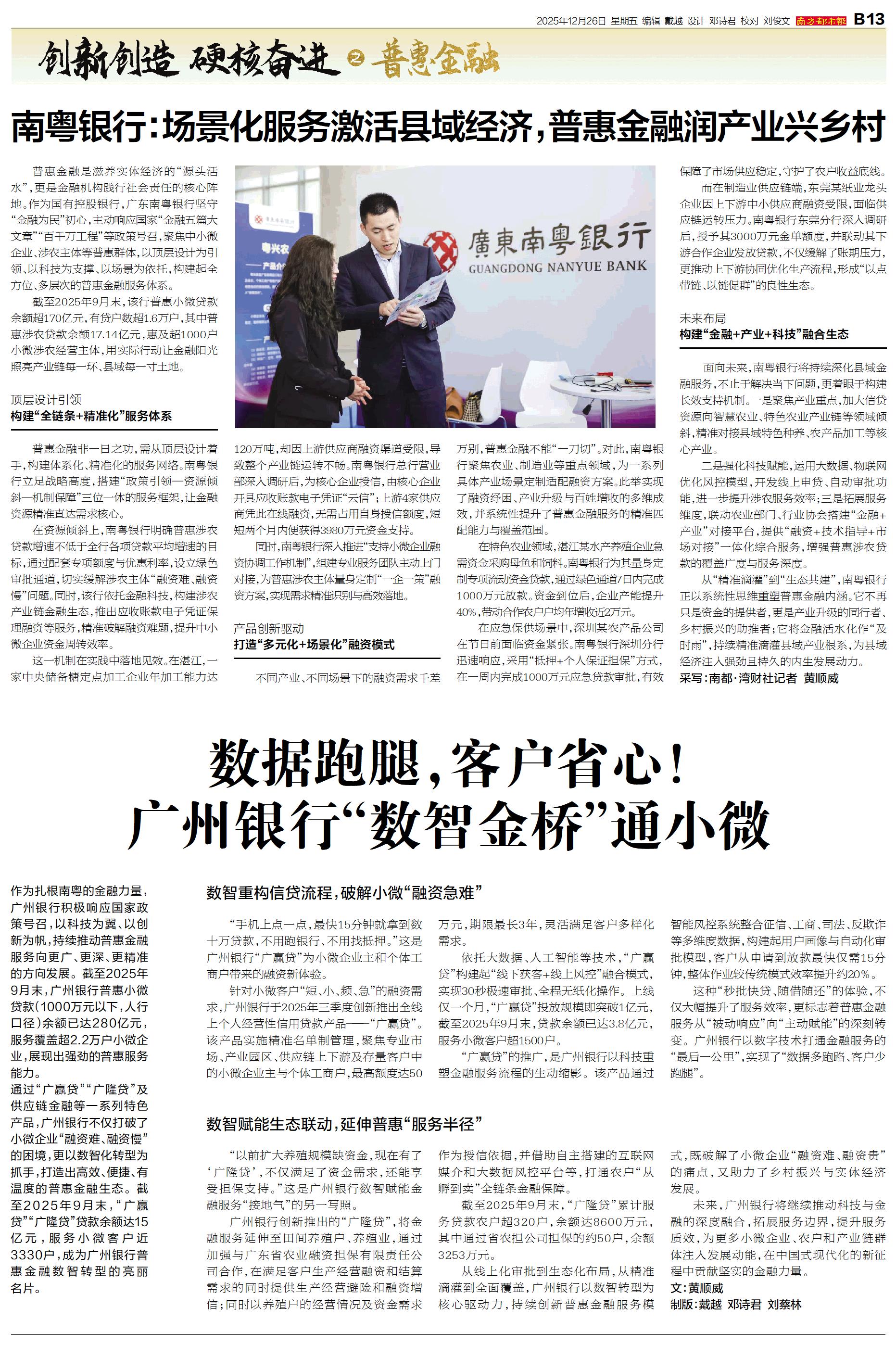 普惠金融是滋养实体经济的“源头活水”,更是金融机构践行社会责任的核心阵地。作为国有控股银行,广东南粤银行坚守“金融为民”初心,主动响应国家“金融五篇大文章”“百千万工程”等政策号召,聚焦中小微企业