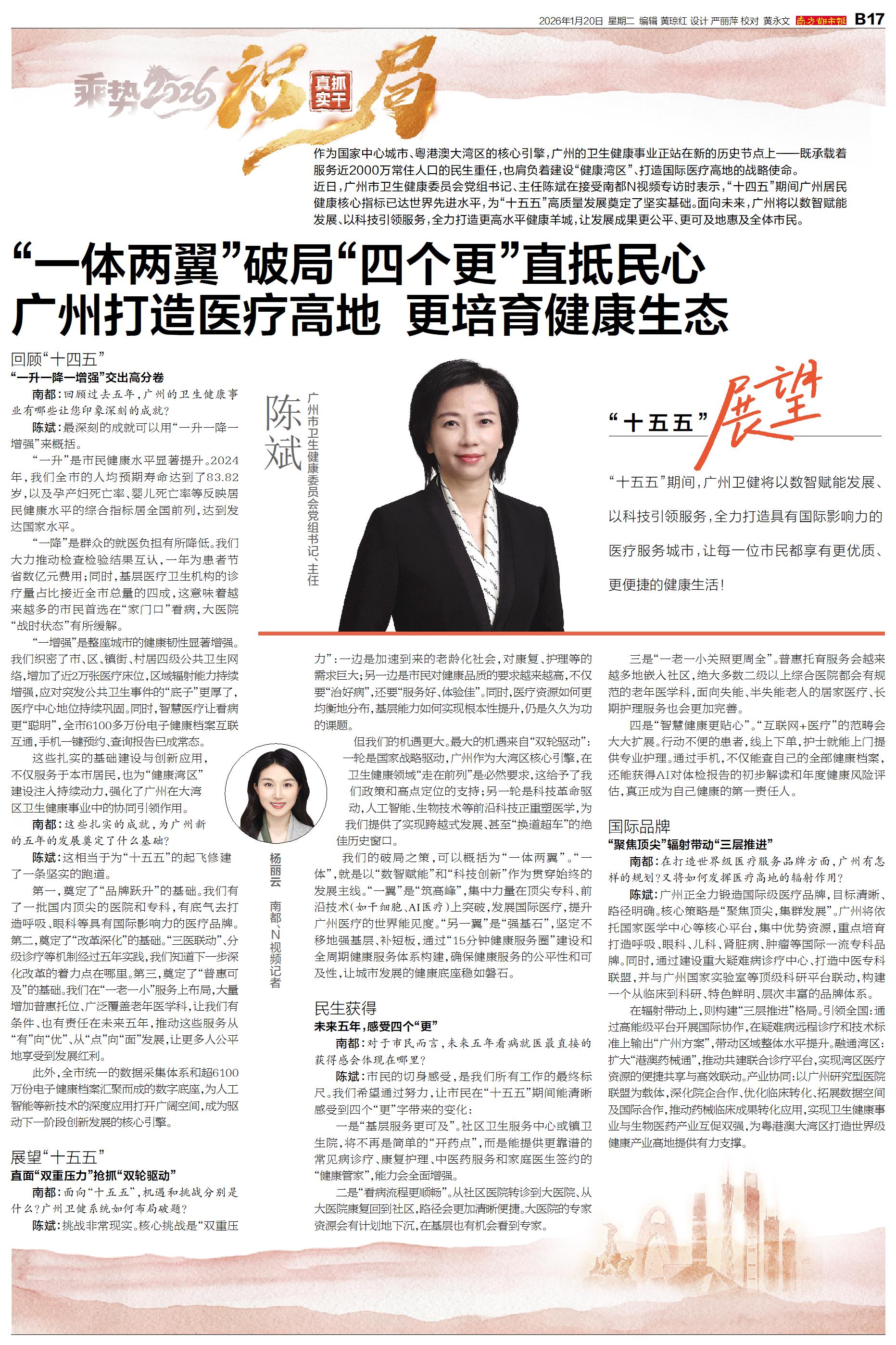 作为国家中心城市、粤港澳大湾区的核心引擎,广州的卫生健康事业正站在新的历史节点上——既承载着服务近2000万常住人口的民生重任,也肩负着建设“健康湾区”、打造国际医疗高地的战略使命。 近日,广州