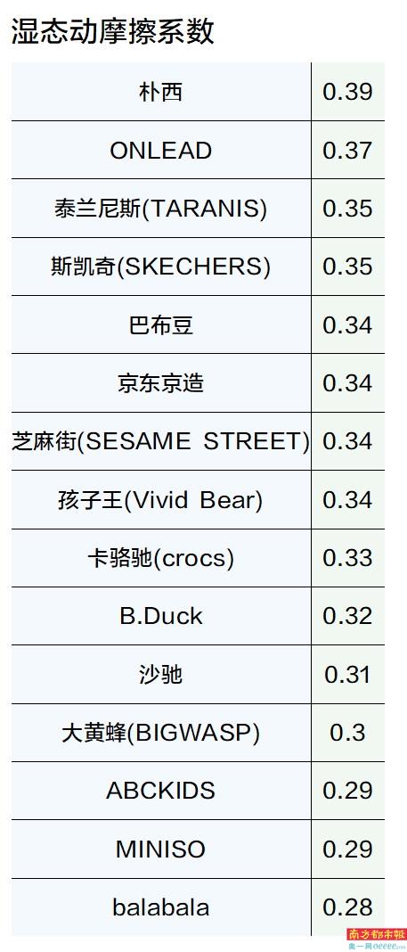 对于防滑性能的比较试验结果,深圳市消委会表示,建议消费者在涉水环境及易滑地面等情境下,尽量选择湿态动摩擦系数较高的产品。