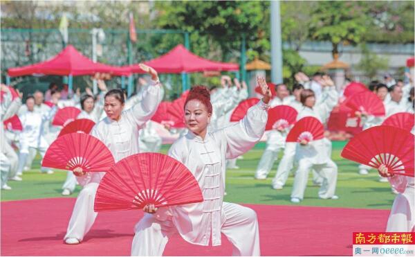这里既有老一辈钟爱的传统民俗,也有年轻人追捧的潮玩体验,更有亲子喜爱的趣味游园会、躲避盘邀请赛、健步足球体验等特色体育项目。在广府庙会武林大会上,来自广东各地的46支代表队伍、770余名武术爱好者同台竞技。退休后学习太极的王姐,首次参加团体比赛便收获满满:“练太极强身健体,现场氛围热烈,不同年龄段交流切磋,特别有意义。”
