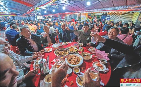 祠堂庙会筵开百席,村民欢聚一堂共品广府家宴。
