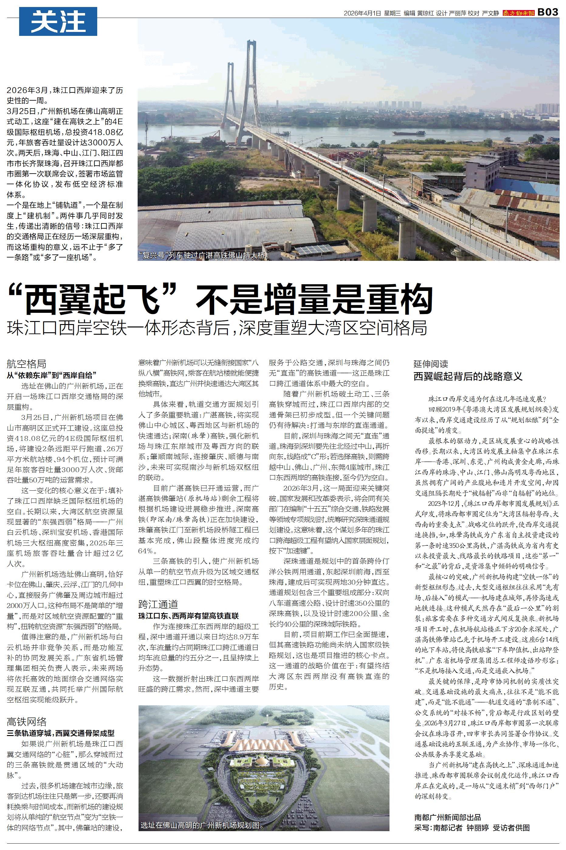 一个是在地上“铺轨道”,一个是在制度上“建机制”。两件事几乎同时发生,传递出清晰的信号:珠江口西岸的交通格局正在经历一场深层重构,而这场重构的意义,远不止于“多了一条路”或“多了一座机场”。