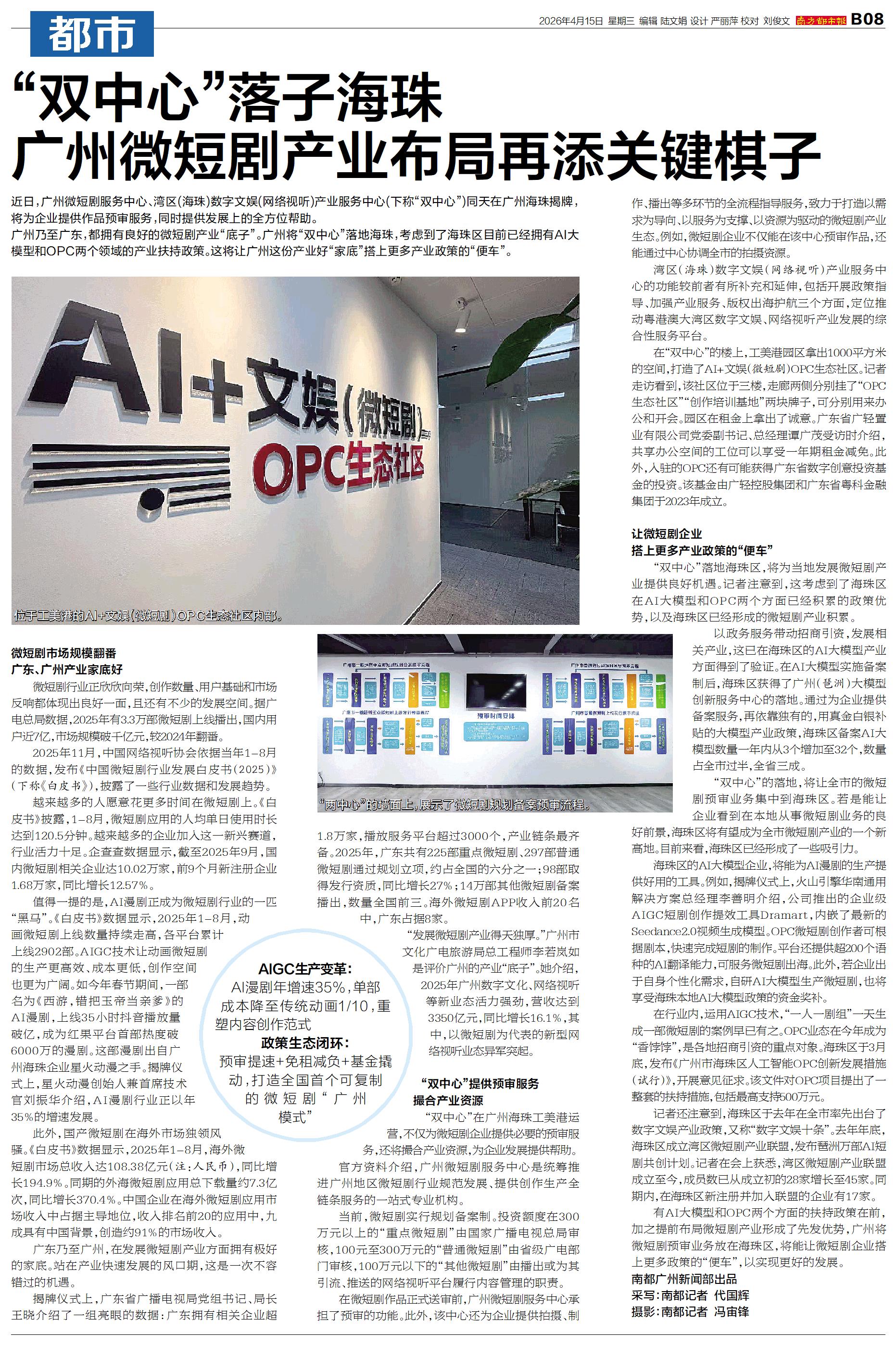 “双中心”落子海珠 广州微短剧产业布局再添关键棋子