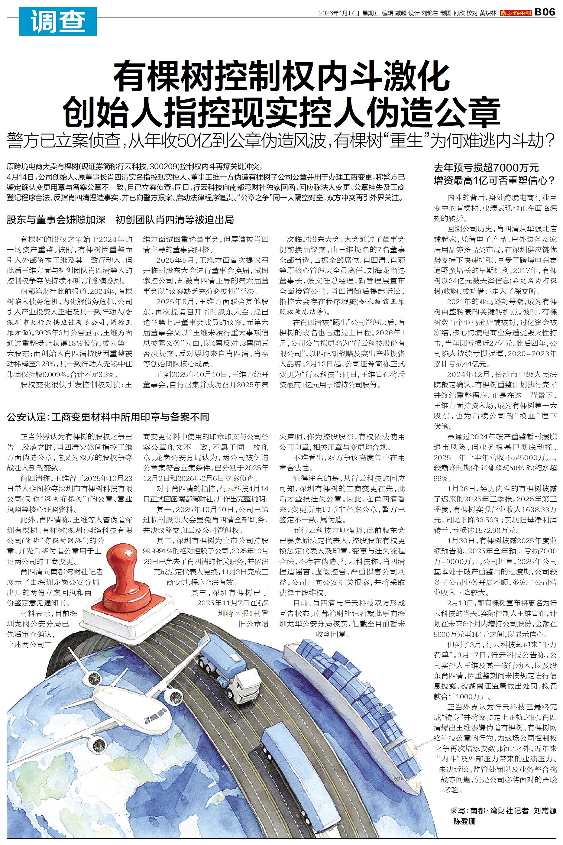 有棵树控制权内斗激化 创始人指控现实控人伪造公章