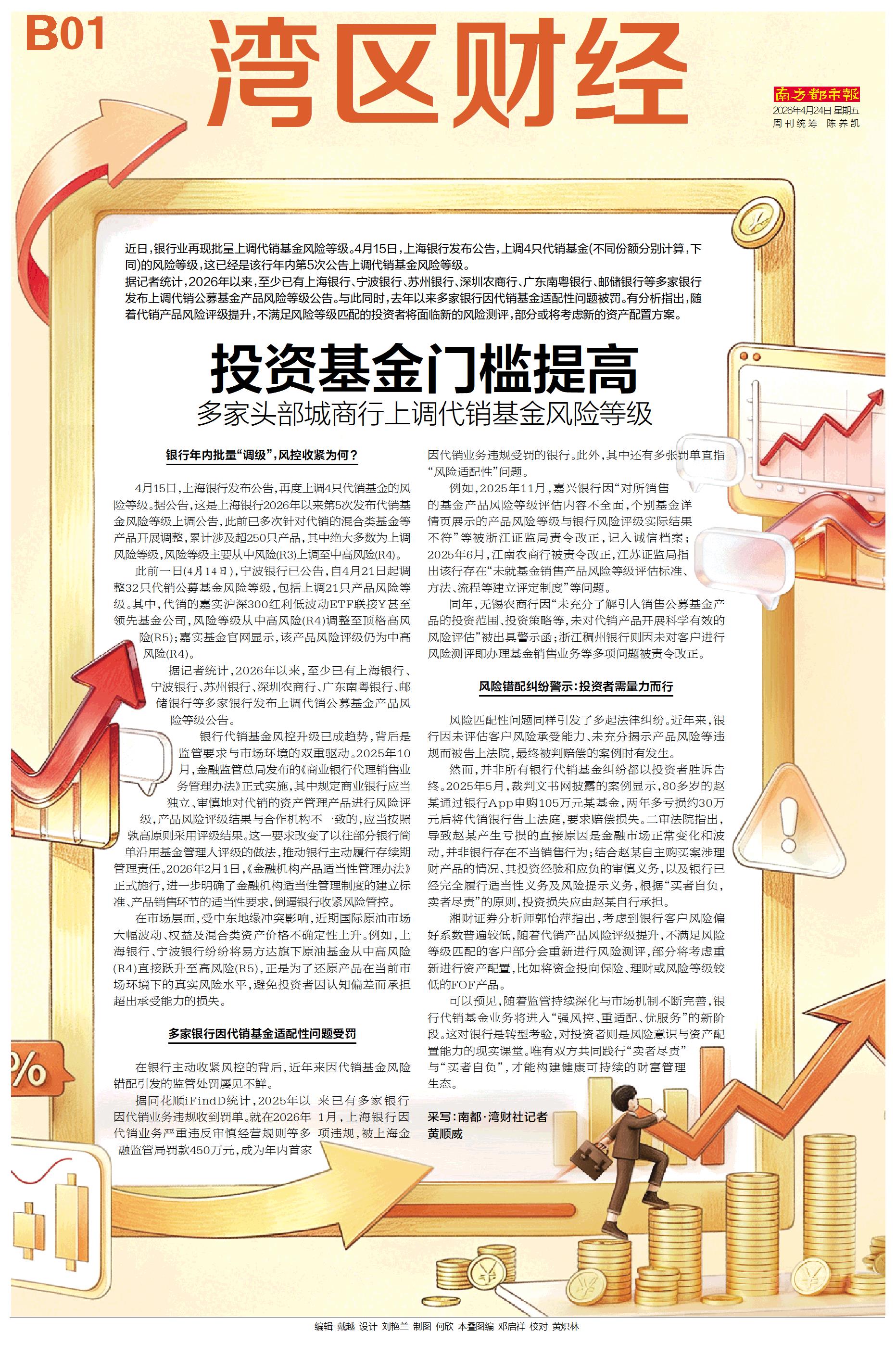 近日,银行业再现批量上调代销基金风险等级。4月15日,上海银行发布公告,上调4只代销基金(不同份额分别计算,下同)的风险等级,这已经是该行年内第5次公告上调代销基金风险等级。 据记者统计,202