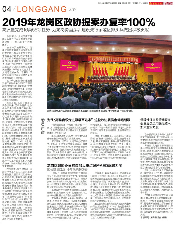政协深圳市龙岗区第五届委员会第五次会议圆满完成各项议程,于1月15日下午胜利闭幕。在前一天的开幕式上,龙岗区政协主席吴书坤作政协深圳市龙岗区第五届委员会常务委员会工作报告。大会书面听取了区政协常务委员