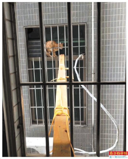 宠物猫留守一个多月 跳窗卡在对面楼窗户 7个多小时救出