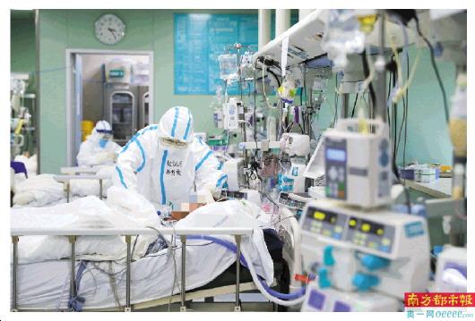 2020年3月8日,武汉协和医院西院ICU,正在工作的广东医疗队的医护人员。
