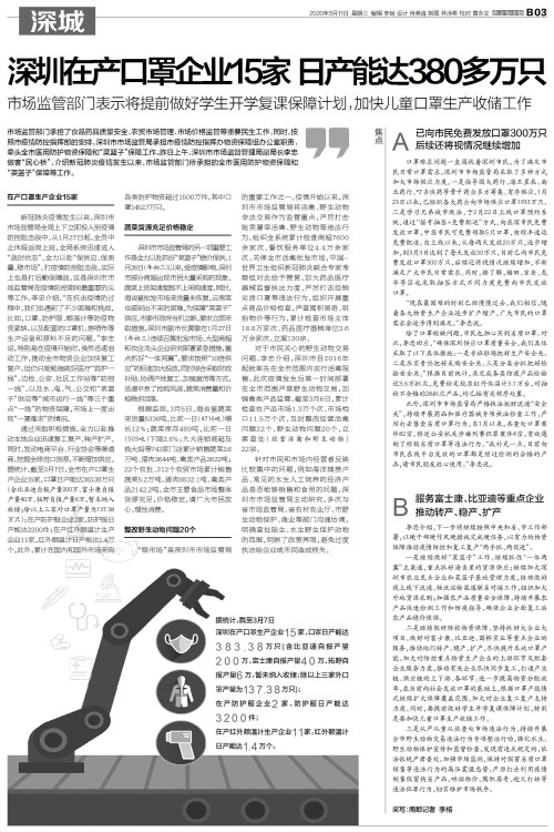 市场监管部门承担了食品药品质量安全、农贸市场管理、市场价格监管等重要民生工作,同时,按照市疫情防控指挥部的安排,深圳市市场监管局承担市疫情防控指挥办物资保障组办公室职责,牵头全市医用防护物资保障和“菜