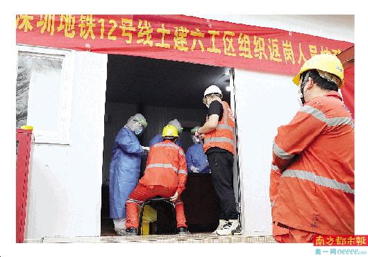 据统计,截至目前,深圳地铁12号线已有5031人接受了核酸检测,未发现一例异常。中国电建深圳地铁项目后续返深的施工人员也将严格按照“隔离期满、核酸检测合格”的双管控标准进行排查,符合条件的返岗工作,确保做到疫情防控、复工复产两手抓、两不误。