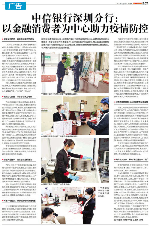 中信银行深圳分行:以金融消费者为中心助力疫情防控