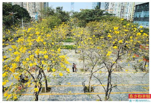 当然,春色无处不在。如果你暂时没空来到莲花山公园,在深圳的很多街头和角落,你依然会发现不少美景:如黄花风铃木、簕杜鹃、羊蹄甲等,只要你有一双发现美的眼睛,总能觅得春的痕迹。